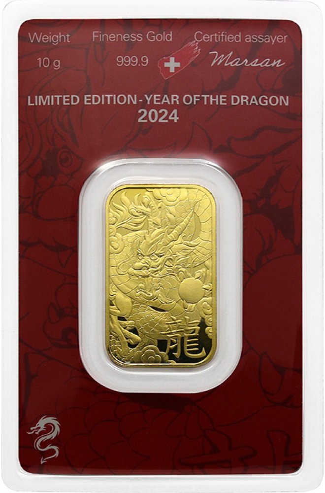 Tento 10 g investiční zlatý slitek certifikovaný švýcarskou firmou Argor-Heraeus SA odpovídá londýnskému standardu Good Delivery (LBMA) a je věnován Roku draka 2024 (Year od the Dragon 2024). Ražen je v limitovaném nákladu 18 888 kusů. Autenticita slitku je deklarována na vrchní straně slitku a obsahuje logo dodavatele a rafinérie, unikátní číslo, ryzost a váhu.