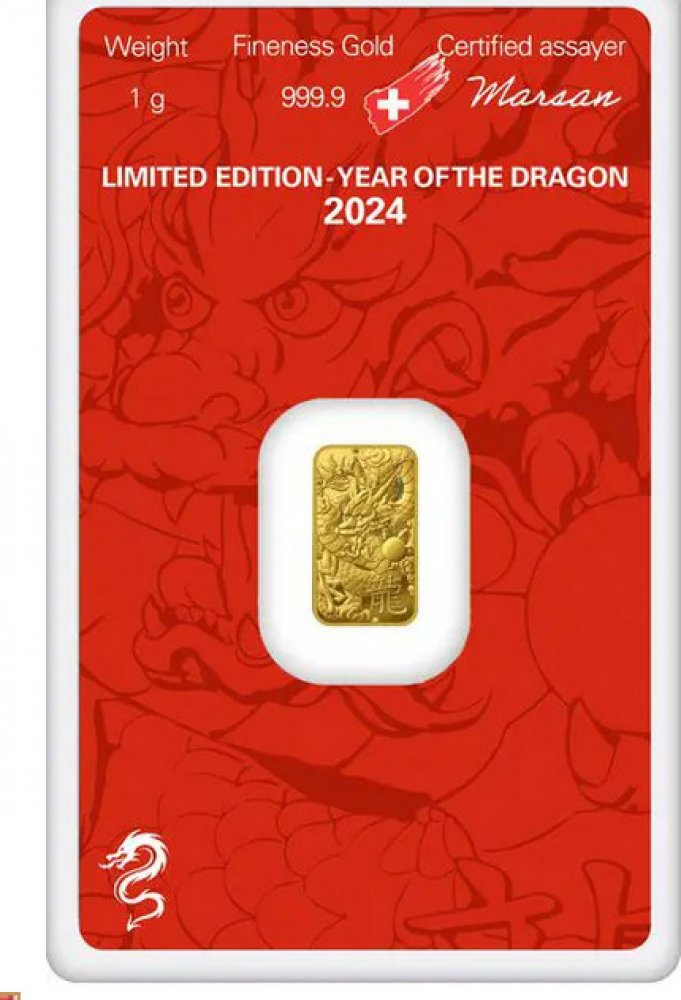 Švýcarský zlatý slitek z 24karátového zlata, certifikovaný společností Argor-Heraeus SA odpovídá londýnskému standardu Good Delivery a je proto bez problémů akceptován na všech trzích.Na přední straně slitku jsou vyraženy identifikační údaje jako je logo a název výrobce, hmotnost slitku, ryzost Fine Gold 999,9 a výrobní číslo xxxx/28888. Tento druh číslování se používá především u zlatých mincí, kdy první číslice značí pořadové číslo slitku a za lomítkem je maximální počet vyražených kusů. Na zadní straně slitku je vyobrazen Drak, který je znamením Lunárního roku 2024 a čínský znak pro draka. Celkem byl vyražen pouze limitovaný náklad 28 888 kusů slitků.