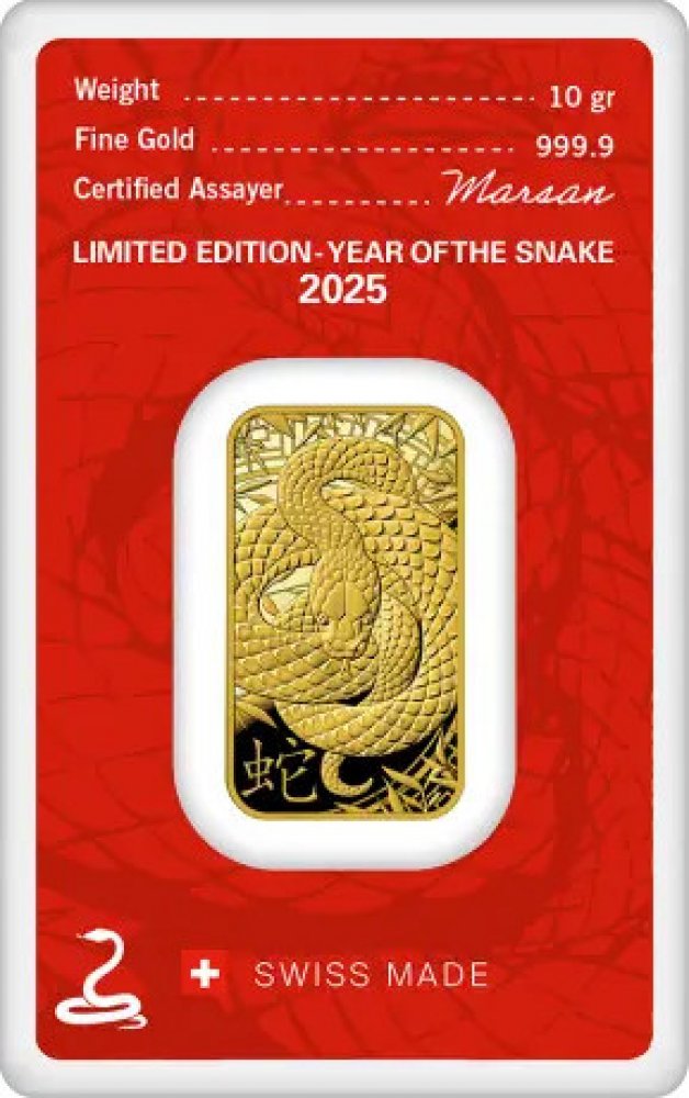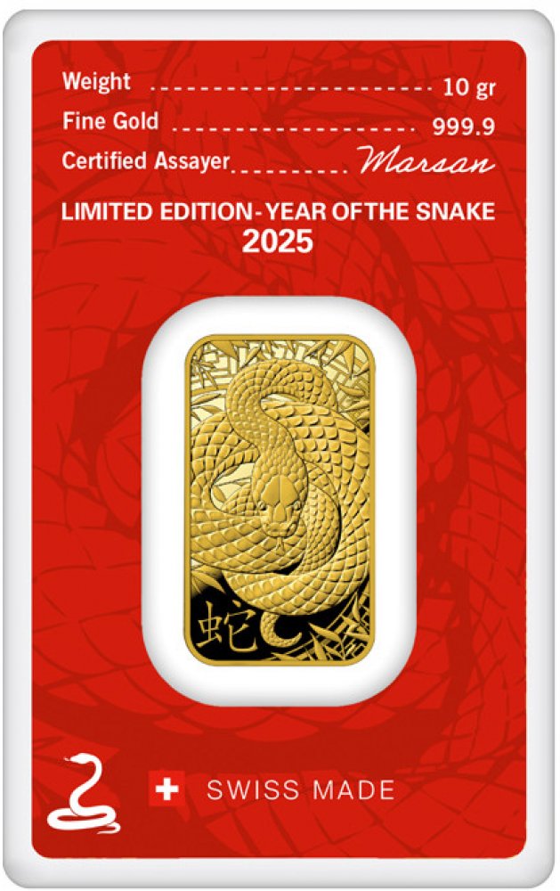 Tento 10 g investiční zlatý slitek certifikovaný švýcarskou firmou Argor-Heraeus SA odpovídá londýnskému standardu Good Delivery (LBMA) a je věnován Roku hada 2025 (Year od the Snake 2025). Ražen je v limitovaném nákladu 18 888 kusů. Autenticita slitku je deklarována na vrchní straně slitku a obsahuje logo dodavatele a rafinérie, unikátní číslo, ryzost a váhu.
