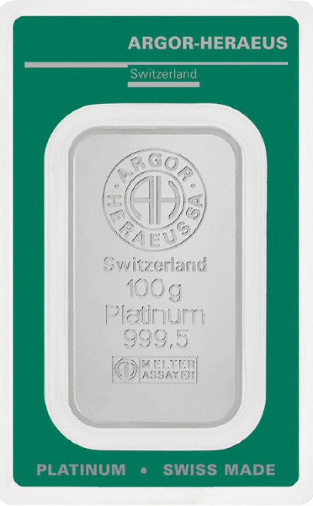100g investiční platinový slitek je vyroben z jednoho z nejvzácnější kovů - z platiny o ryzosti 999,5. Ražený slitek je zataven v ochranném plastovém obalu spolu s certifikátem, kde je uvedeno: identifikační číslo, váha, ryzost a výrobce. Investiční platina od výrobce Argor Heraeus SA odpovídá londýnskému standardu Good Delivery (LBMA). Švýcarská rafinerie Argor Heraeus je celosvětově uznávaným vý...