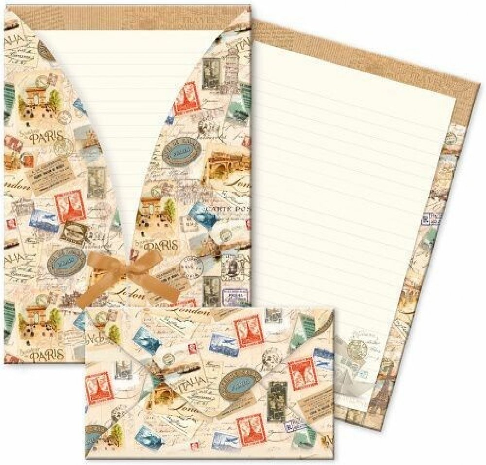 Dopisní papír s potiskem a k tomu barevně potištěné obálky. Dopisní souprava obsahuje 10 ks papíru s linkami a 10 ks barevně sladěných obálek. Celá dopisní souprava je zabalena v dárkovém balení s mašličkou.
