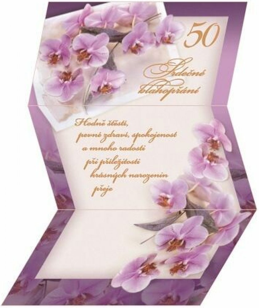 Přání k 50. narozeninám - listina s textom. Součástí balení je i barevně sladěná obálka. Originální technologie zpracování přáníčka od společnosti ARGUS - "Na detailu záleží!"
