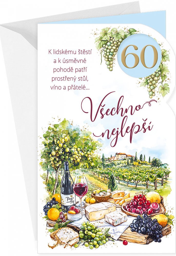 Narozeninové přání ke 60.narozeninám s textem uvnitř přání.* součástí blahopřání je barevně sladěna obálka* originální technologie zpracování přáníčka od společnosti ARGUS - "Na detailu záleží!"