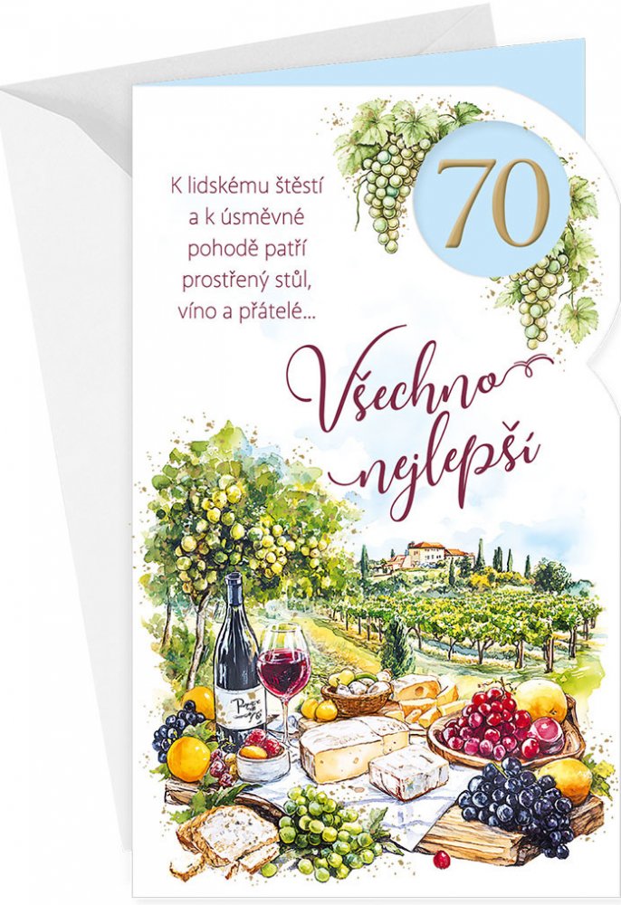 Narozeninové přání ke 70.narozeninám s textem uvnitř přání.* součástí blahopřání je barevně sladěna obálka* originální technologie zpracování přáníčka od společnosti ARGUS - "Na detailu záleží!"