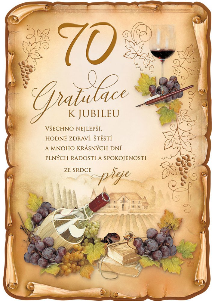 Přání pro muže k 70. narozeninám - listina A4.* s textem uvnitř přání* součástí balení je i barevně sladěná obálka* originální technologie zpracování přáníčka od společnosti ARGUS - "Na detailu záleží!"