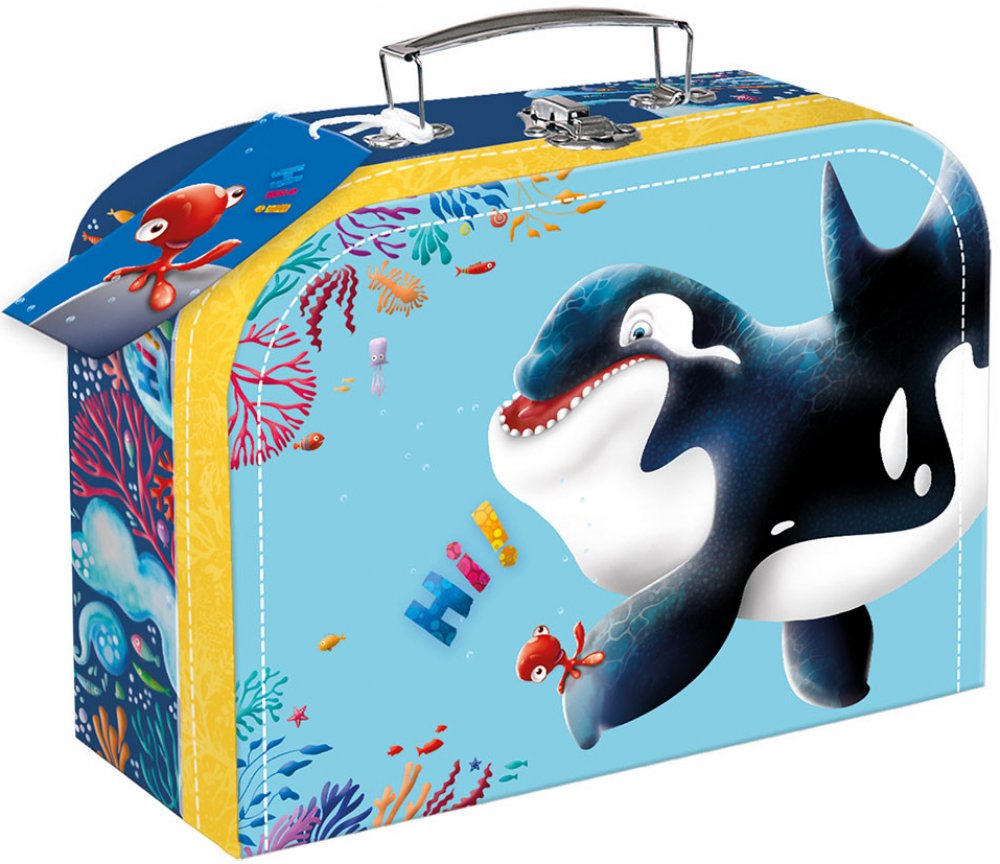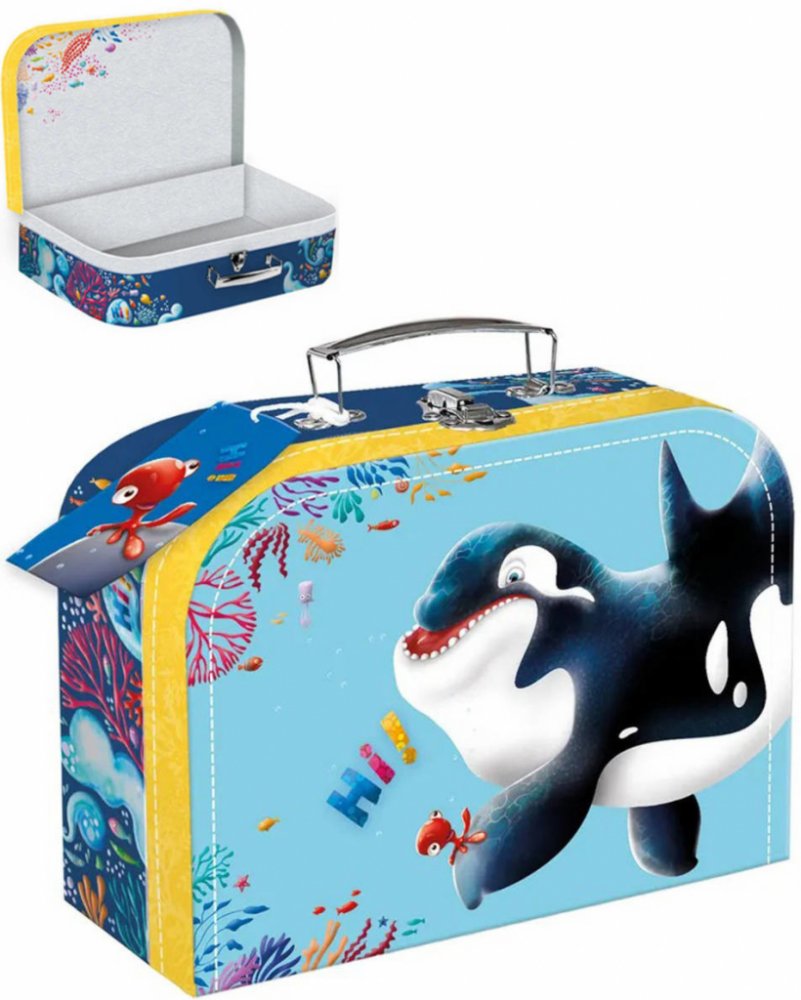 Papírový dětský kufřík velikosti 25cm Hi!. Kufřík je vyroben z kvalitního pevného kartonu s vnitřní potiskem a kovovým uzavíráním s rukojetí. Jeho využití v dětském světě je velké, možnost uložení hraček ale i jiných drobností na cestu k babičce.