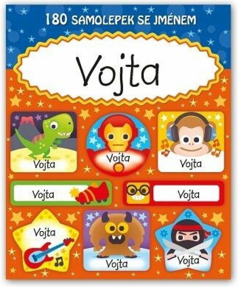 Samolepky se jménem obsahují 15 listů, 180 ks samolepek. Samolepky si mohou děti lepit na cokoli a kamkoli – zápisníčky, obaly sešitů, do památníčků nebo na papír a vytvořit si vlastní obrázek a to hlavní, označit si věci svým jménem.