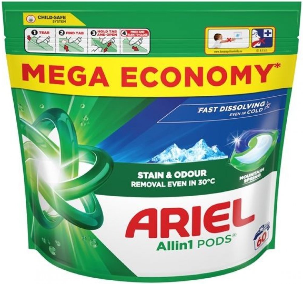 Ariel Mountain Spring jsou praktické kapsle na praní, které účinně odstraňují
