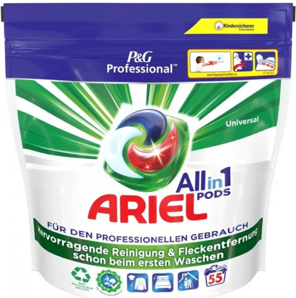 Popis Ariel univerzální kapsle na praní:Vyjímečná čistící síla v jedné prací kapsli, rozdělená na 3 části. Dokonale vypere, odstraní skvrny a rozjasní vlákna oblečení. Každá složka je stabilně oddělena do doby, dokud nepřijde do styku s vodou. Inovační obal se dokonale rozpouští při kontaktu s vodou a uvolňuje účinné koncentrované látky, které si s lehkostí poradí s širokou škálou skvrn. Ariel 3 v 1 ochraňuje a rozjasňuje vlákna, po vyprání zůstává prádlo čisté, voňavé a nádherně bílé. Použití:Jednoduché použití - není třeba dávkovatÚčinné již od 30°C Složení:30% aniontové povrchově aktivní látky, 5–15% neiontové povrchově aktivní látky, mýdlo,