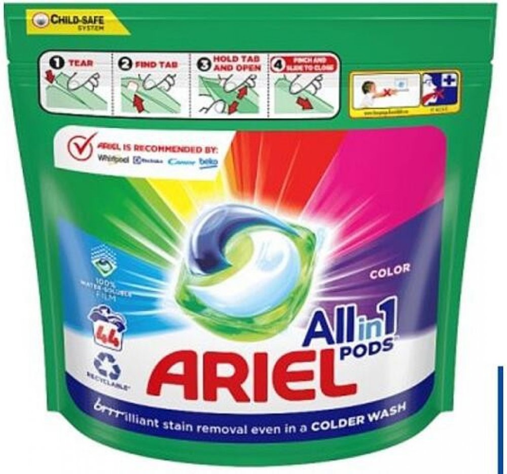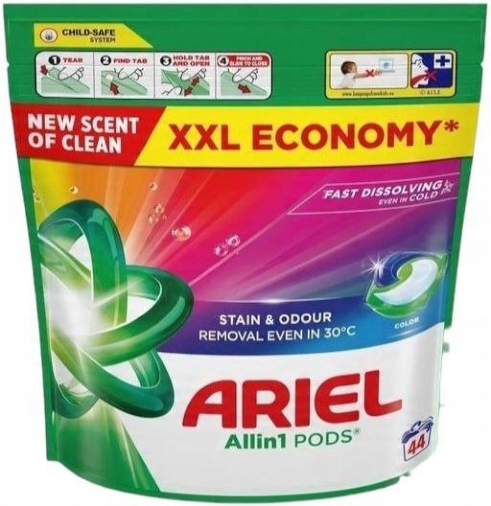 ARIEL Allin1 PODS, Color, kapsle na praní, 44 ks Ariel All-in-1 PODS, kapsle s pracím prostředkem Color Clean & Fresh, které zajišťují dokonalé odstranění skvrn dokonce i při nižší teplotě praní a kratším pracím cyklu. Chrání tkaniny.