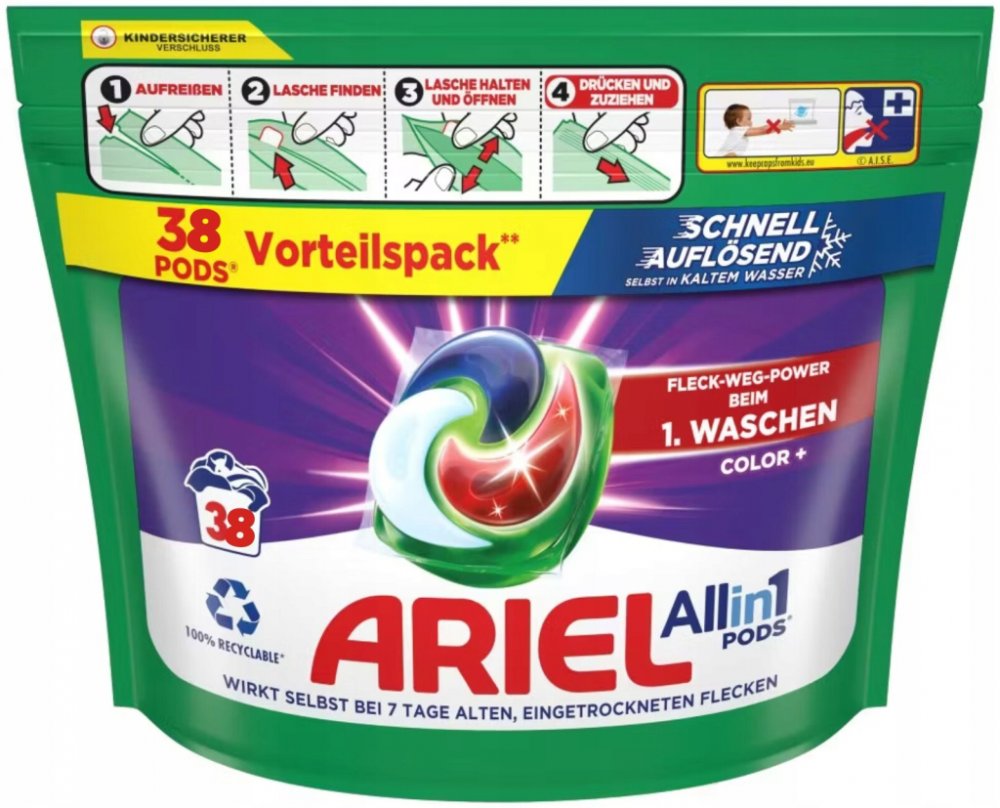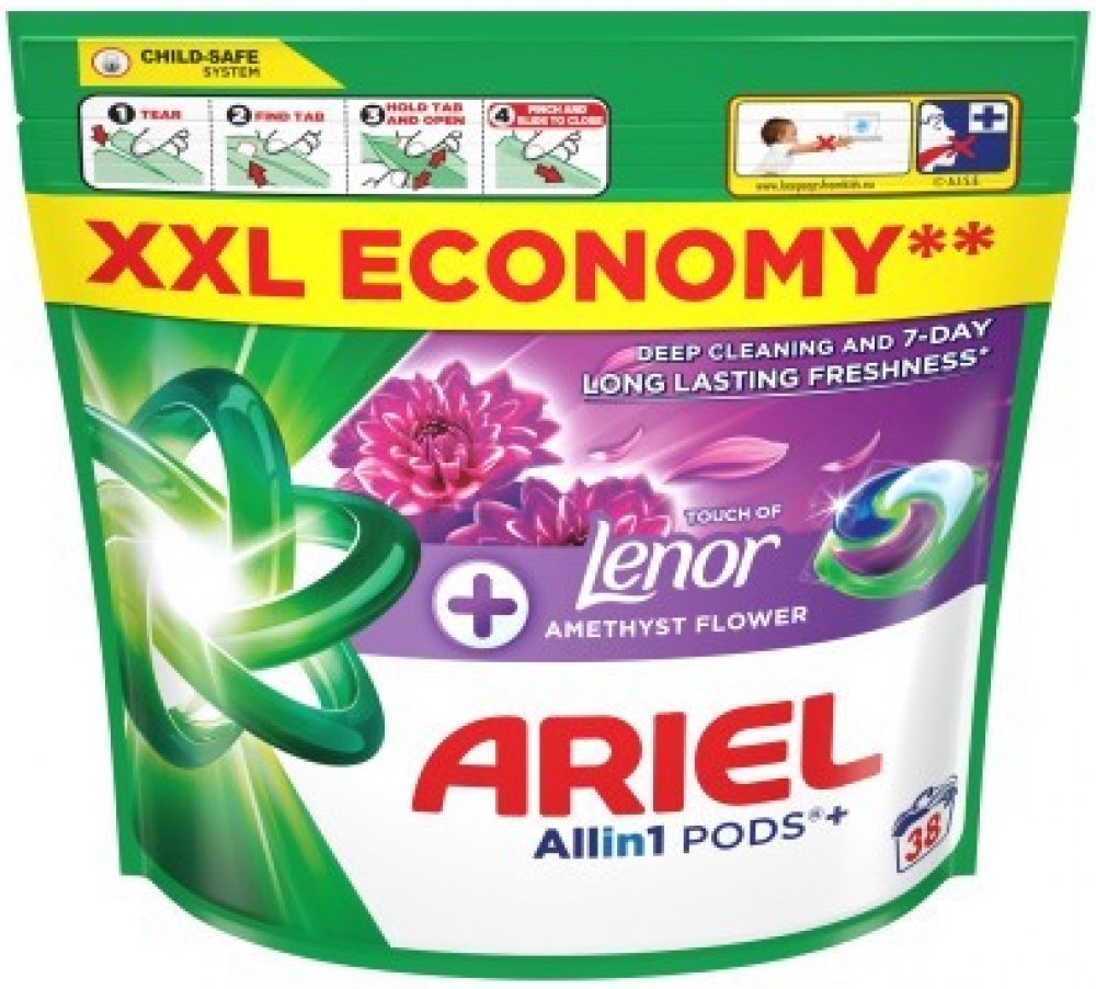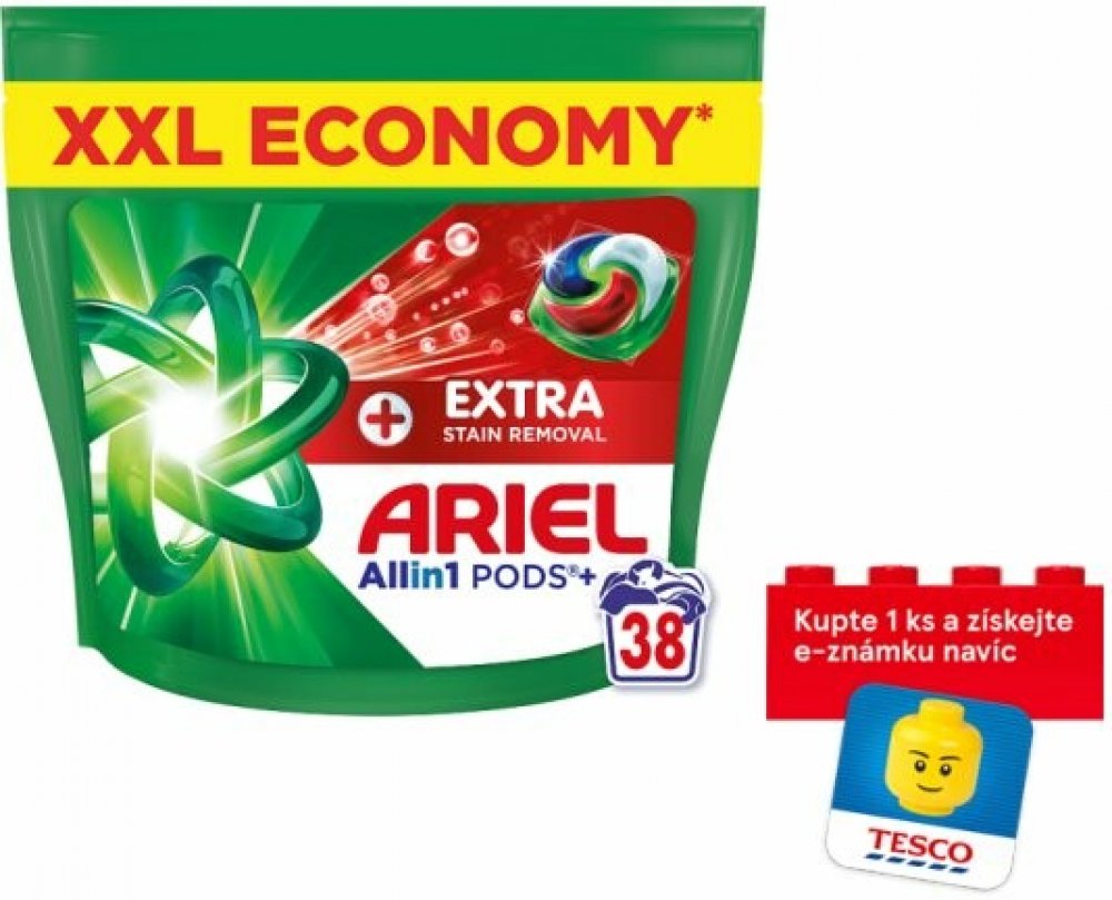 ARIEL Allin1 PODS+, extra stain removal, kapsle na praní, 38 ks Ariel představuje Ariel All-in-1 PODS, kapsle s tekutým pracím prostředkem, které zajišťují dokonalé odstranění skvrn dokonce i při nižší teplotě praní. Mimořádná účinnost při odstraňování skvrn a zápachu.