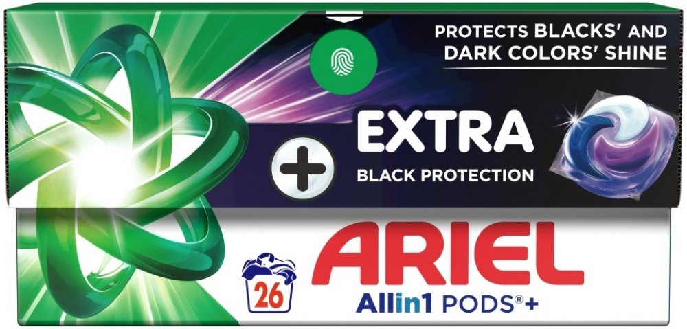 Nové kapsle na praní Ariel All-in-1 PODS s ochranou černých tkanin jsou ideálním řešením pro všechny, kteří chtějí zachovat sytou barvu a lesk svého oblečení. Inovativní fialová ochranná komora chrání vlákna a zabraňuje vyblednutí, díky čemuž černé a tmavé tkaniny vypadají déle jako nové.