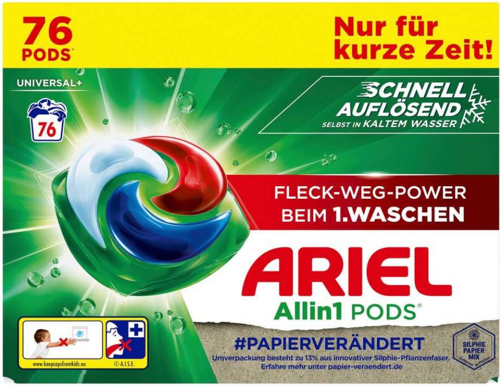 Ariel UNIVERSAL+ Allin1 PODS – 76 kusů – Kapsle na praní z Německa