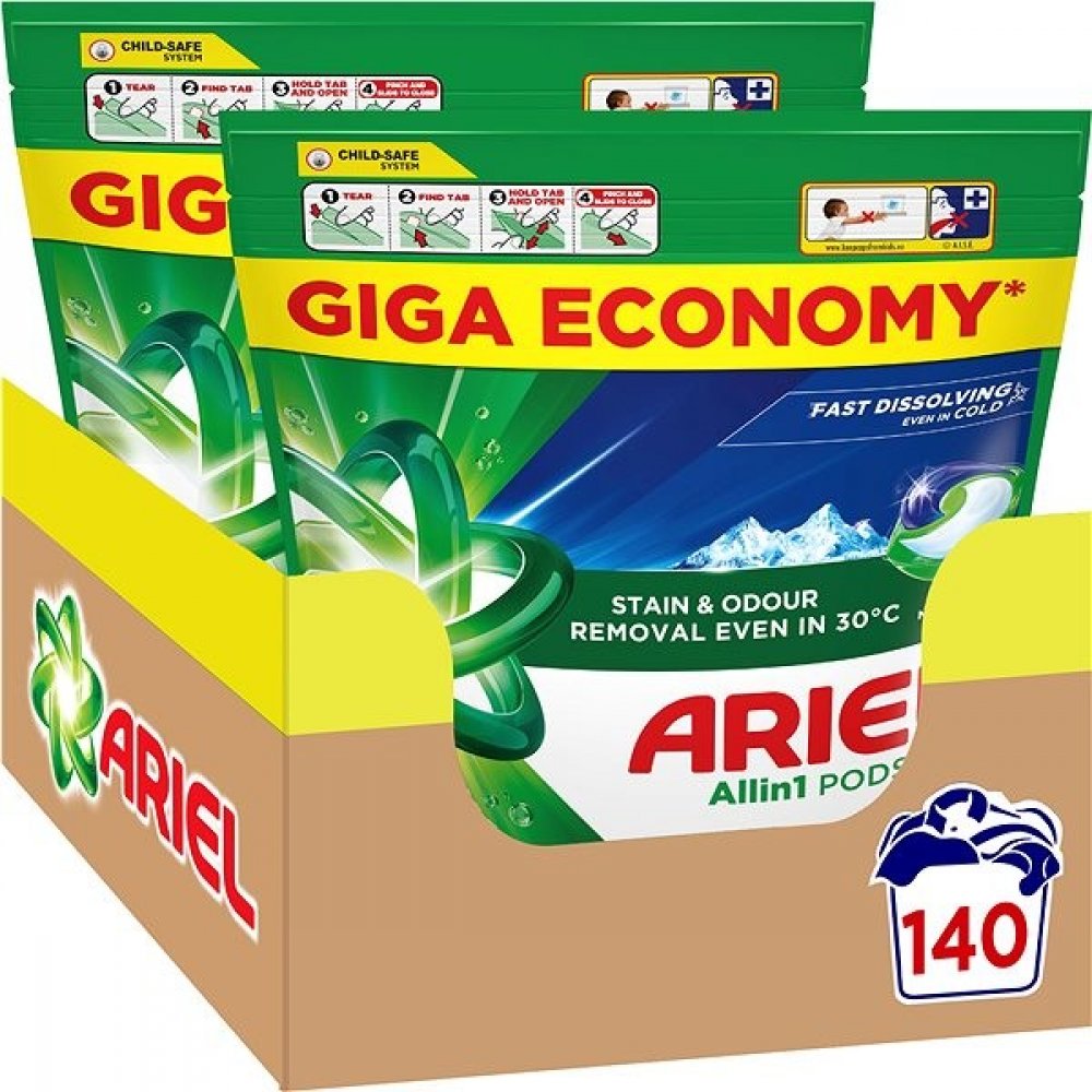 ARIEL Mountain Spring All in 1 jsou univerzální prací tablety na barevné i bílé prádlo. Odstraní i velmi odolné skvrny a nečistoty, a to i při praní na nízké teploty od 30 °C a kratší prací cykly. Díky aviváži je prádlo příjemně provoněné. Tablety také chrání vlákna a udržují je pružná, měkká a sytě zabarvená. Obal kapslí ARIEL Mountain Spring All in 1 se zcela rozpustí i ve studené vodě, neucpává pračku ani neulpí na prádle. Klíčové vlastnosti kapslí na praní ARIEL Mountain Spring All in 1, 2× 70 ksPrací kapsle ARIEL s aviváží pro voňavé a čisté prádloSnadné použití - kapsle se vhazuje přímo do bubnu pračkyZajistí ideální výsledky i při praní na nízké teploty a krátký prací cyklusKapsle ARIEL Mountain Spring odstraní i velmi odolné nečistoty, pachy a skvrny na oblečeníChrání vláknaObal se 100% rozpustí a neulpívá na prádlePříjemná svěží vůně Použití:Kapsli vložte přímo do bubnu pračky, přidejte prádlo a spusťte požadovaný program.