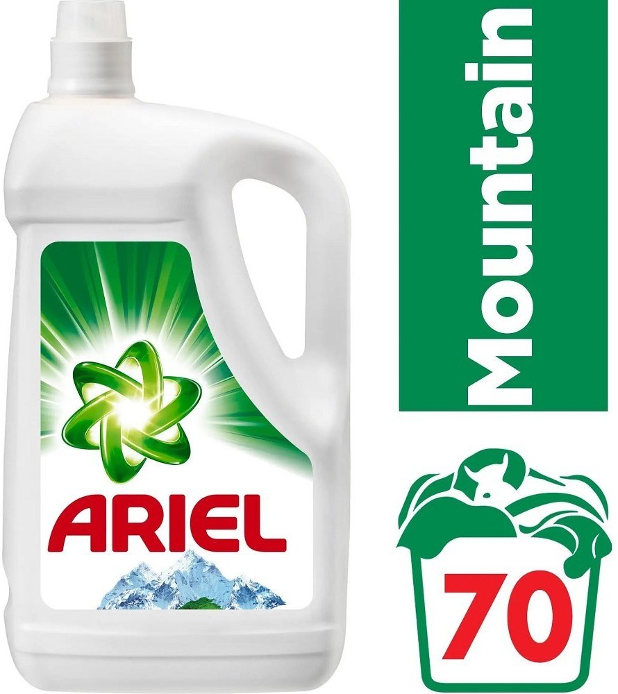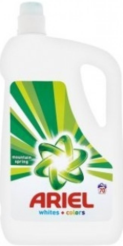 ARIEL Mountain Spring gel 70 pracích dávek, určený na barevné i bílé prádlo. Kombinuje nejlepší účinky Arielu při odstraňování skvrn a péči tekutého Arielu. Nezanechává zbytky, uchovává zářivé barvy a bělost prádla. Obsah: 3 500 ml. Cena za ks.