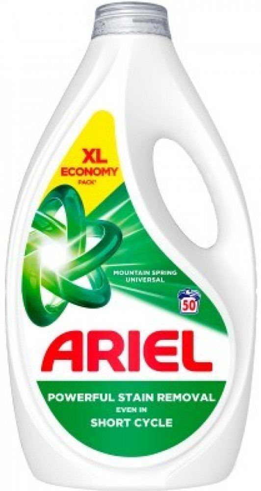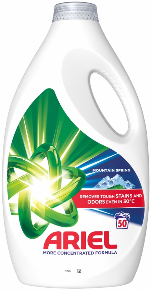 Prací gel ARIEL Mountain Spring účinně odstraňuje skvrny a nepříjemné zápachy i při nízkých teplotách od 30 °C. Speciálně vyvinuté složení je ideální pro krátké prací cykly, díky čemuž šetří energii a chrání textilie. Univerzální použití umožňuje bezpečné praní barevného i bílého prádla, aniž by došlo k jejich poškození. Gel lze aplikovat přímo na skvrny pomocí odměrky. Prací gel ARIEL Mountain Spring je doporučován předními výrobci praček, jako jsou Whirlpool, Beko, Candy a Electrolux. Balení o objemu 2,25 l vystačí na 50 praní. Prací gel ARIEL Mountain Spring odstraňuje i odolné skvrny a zápach už při teplotě 30 °C Je ideální pro krátké prací cykly na nízké teploty Můžete jej přímo aplikovat na skvrny pomocí odměrky Doporučují jej výrobci Whirlpool, Beko, Candy a Electrolux Prací gel ARIEL Mountain Spring disponuje ekologičtějším složením s ohledem na životní prostředí Objem 2,25 l vystačí až na 50 pracích cyklů Univerzální použití na bílé i barevné prádlo
