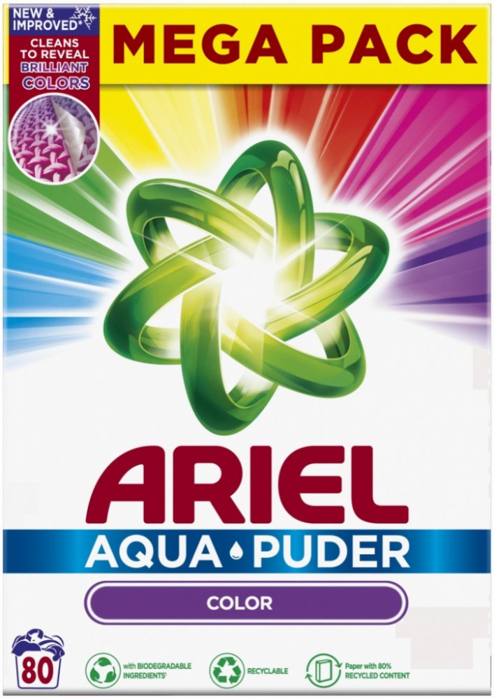 Ariel Color prací prášek je vhodný na barevné prádlo, skvěle zachová barvu i tvar praného prádla. Proniká do hloubky vláken a perfektně odstraňuje odolné nečistoty. Ariel Color prací prášek s nízkou pěnivostí je určen pro barevné prádlo. Díky speciální ochraně udrží zářivé barvy vašeho oblečení na dlouhou dobu. Vše zvládne vyčistit a zároveň rozzářit. Prášek se rychle rozpouští a nezanechává stopy...