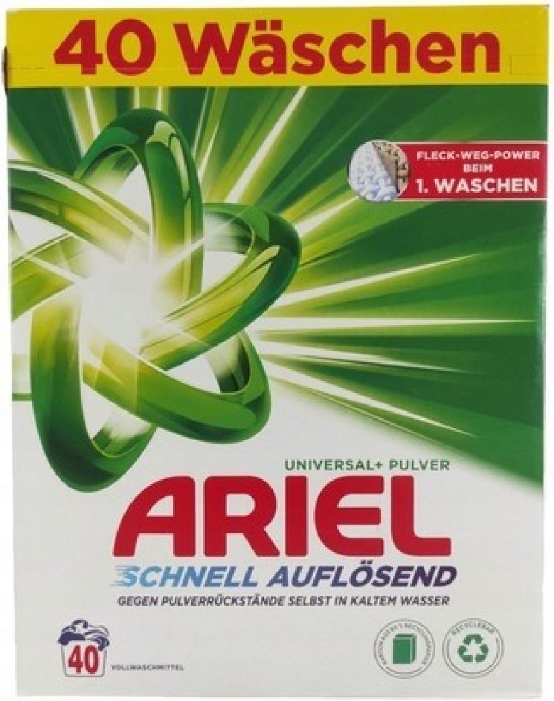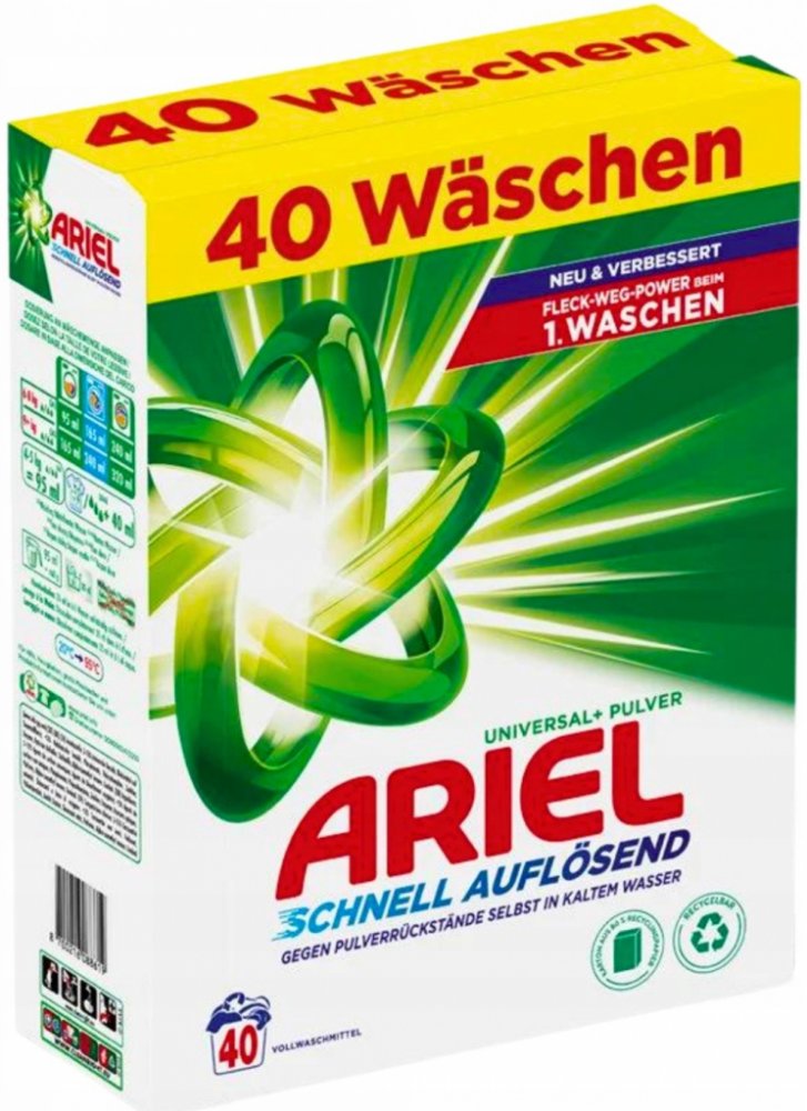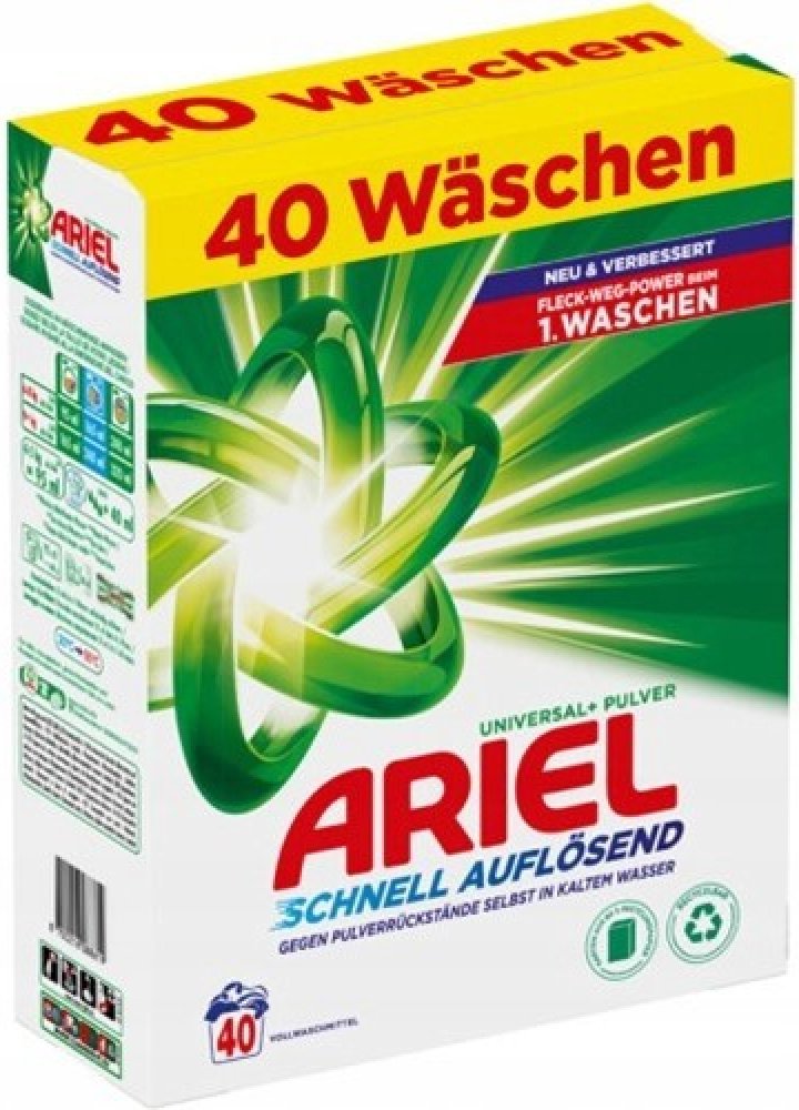 Ariel Universal+ Pulver je účinný prací prášek určený pro všechny typy tkanin (kromě vlny a hedvábí). Jeho pokročilá formule účinně odstraňuje i obtížné skvrny a proniká hluboko do vláken. Pomáhá zachovat intenzitu barev světlých a bílých tkanin a zanechává oblečení svěží a voňavé. Je vhodný pro použití při různých teplotách praní a zajišťuje čistotu a hygienu oblečení.