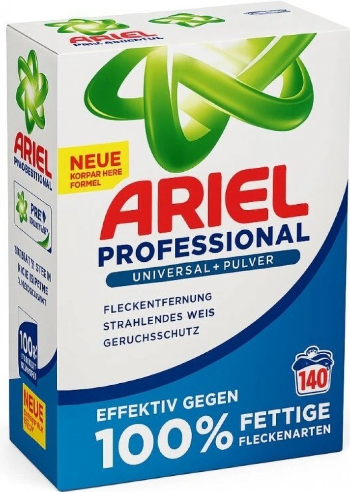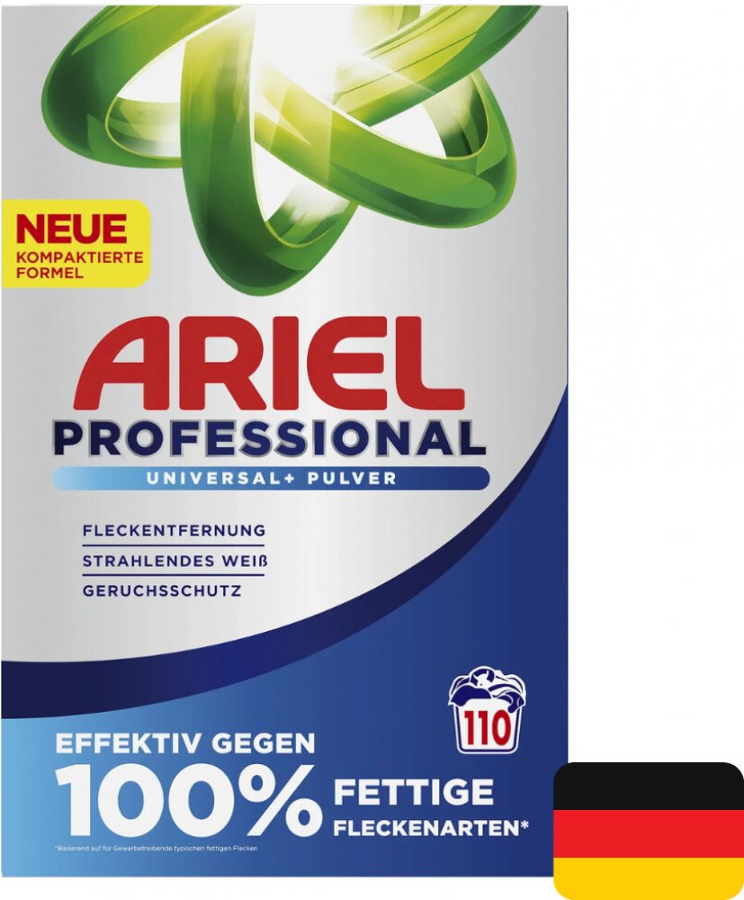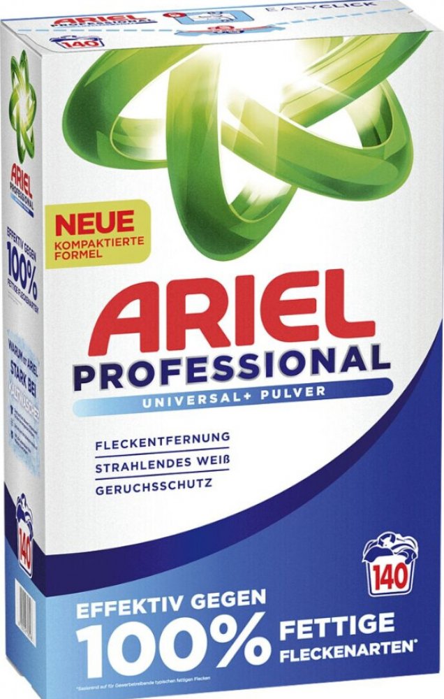 Ne všechny produkty Ariel jsou stejné. Edice Professional je vyráběna výhradně pro německý, rakouský a švýcarský trh s přísnějšími standardy kvality než verze pro východní Evropu. Obsahuje vyšší koncentraci aktivních látek a prochází důkladnějšími testy – proto je účinnější a ekonomičtější. Toto není běžná supermarketová verze, ale profesionální řešení pro náročné zákazníky.