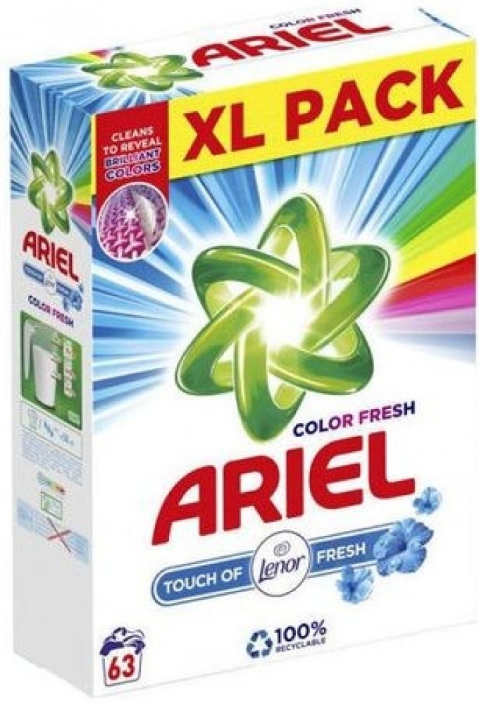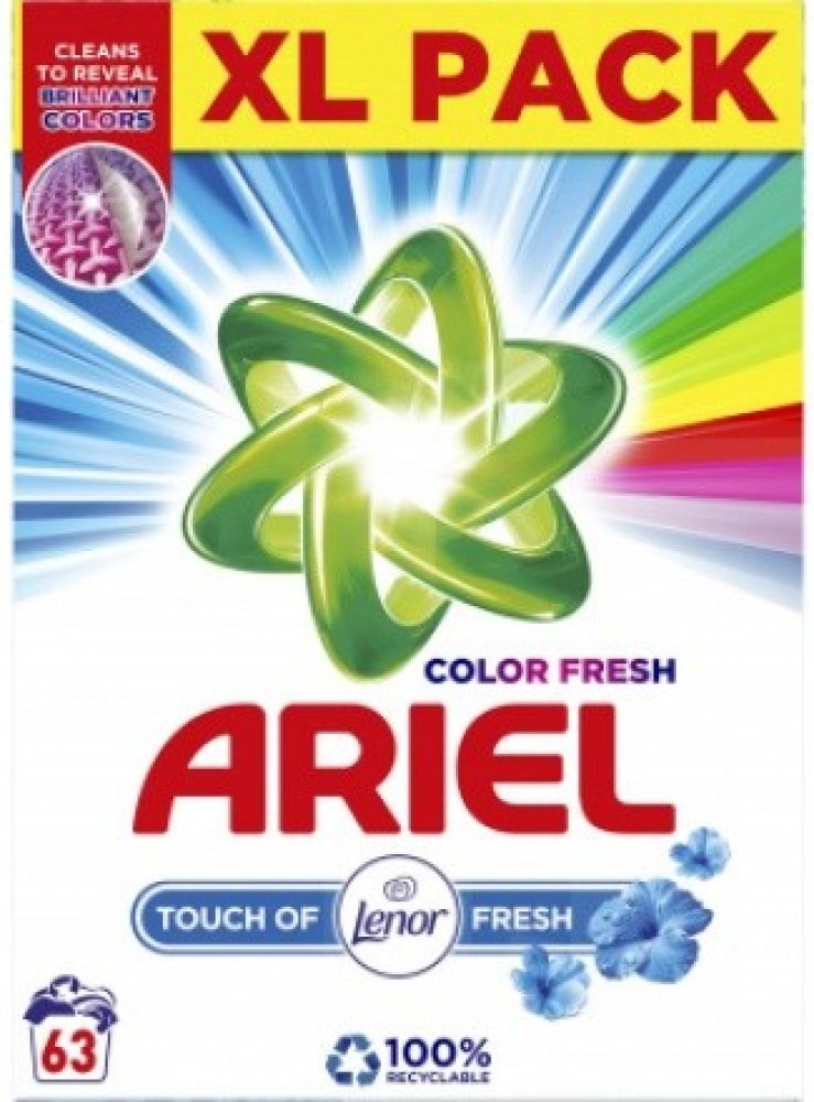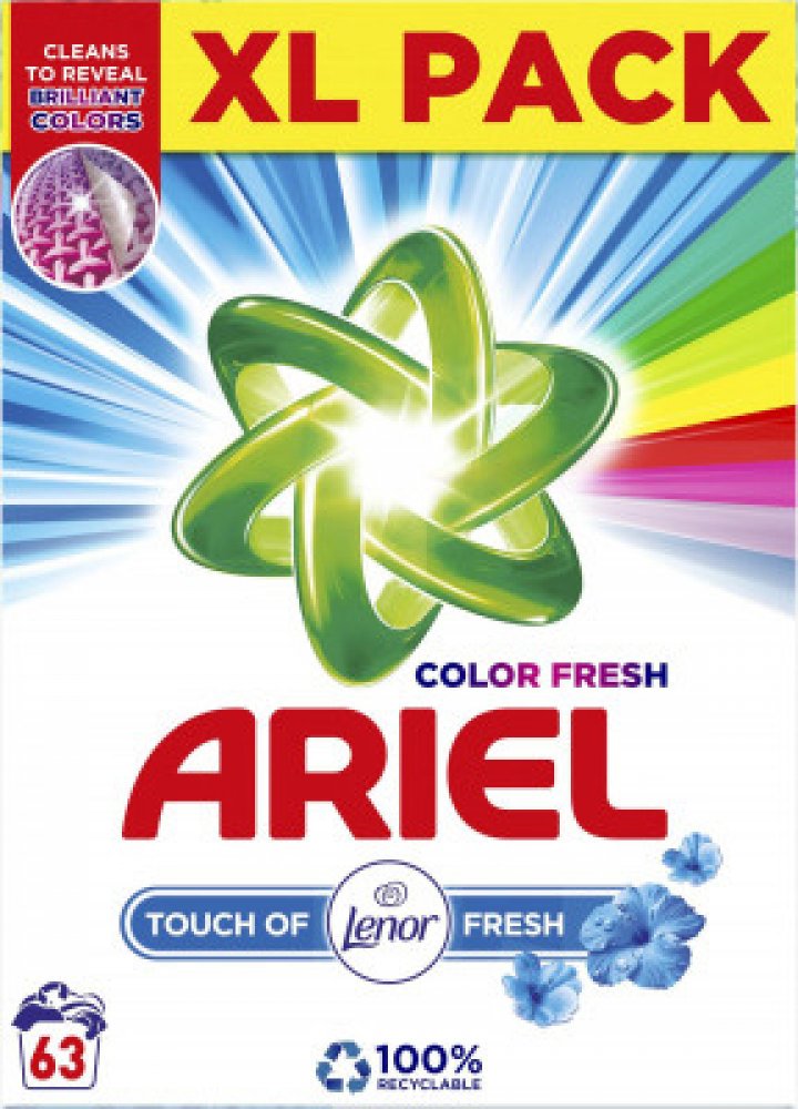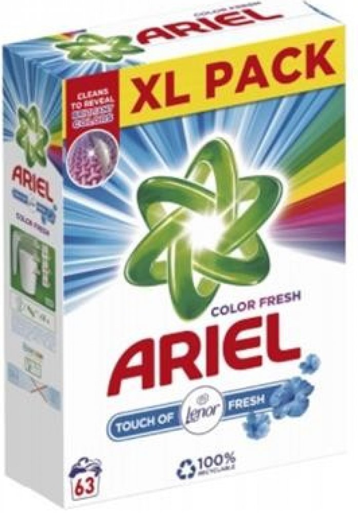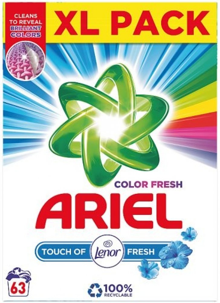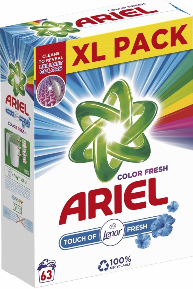 Ariel Touch of Lenor prací prášek odstraňuje i odolné skvrny díky tomu, že proniká hluboko do vláken. Zabraňuje tak fixování nečistot v tkanině. Odstraňuje také skvrny, které jsou příčinou zápachu. Oblečení zanechá zářivě čisté a dodává mu svěží vůni Lenoru. Prášek se velmi rychle rozpouští a nezanechává na prádle nežádoucí stopy. Je účinný již při 30 °C, prádlo nepoškozuje. Oblečení můžete bez obav opakovaně prát. Vlastnosti Ariel Touch of Lenor prací prášek: Univerzální prací prášek dodá prádlu svěží vůni. Určen na barevné i bílé prádlo. Rychle se rozpouští a nezanechává zbytky na prádle. Ochrání tkaniny. Účinný již od teploty 30 °C. Chrání proti vodnímu kameni. S dotekem svěží vůně Lenoru. Balení obsahuje 63 pracích dávek, 4,7 kg. Složení Ariel Touch of Lenor: Oxygen-Based Bleaching Agents, lt;5% Non-Ionic Surfactants, 5-15% Anionic Surfactants, Phosphonates, Polycarboxylates, Zeolites, Enzymes, Optical Brighteners, Perfumes, Alpha-Isomethyl ionone, Linalool.
