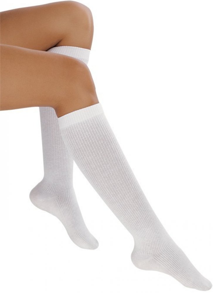 Lýtkové punčochy první kompresní třídy (18 - 21 mmHg) s přídavkem bavlny. Lýtková kompresní podkolenka vel. 42-44, barva bílá, Unisex.