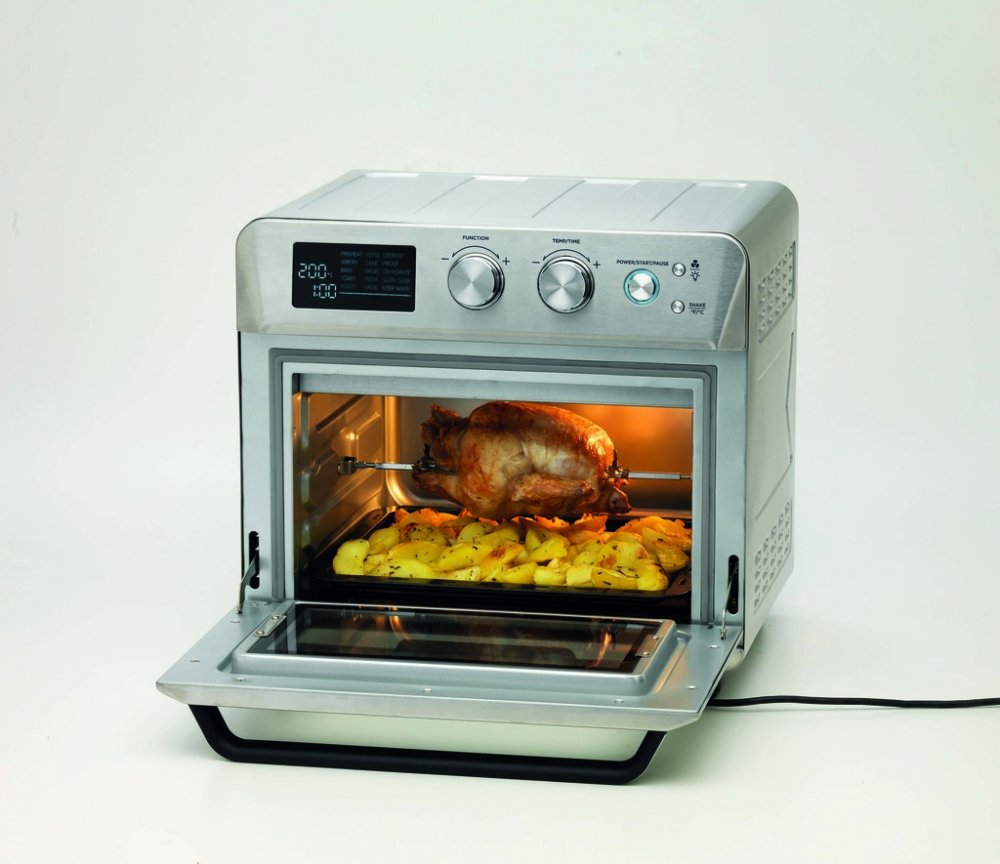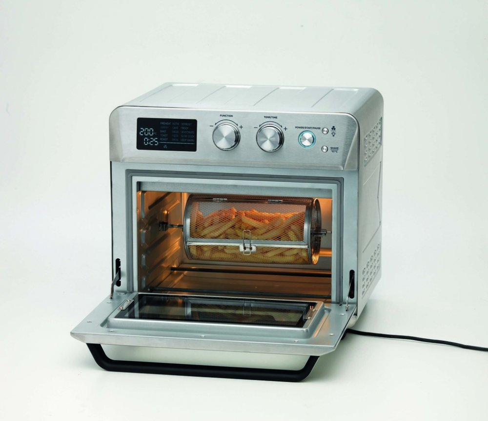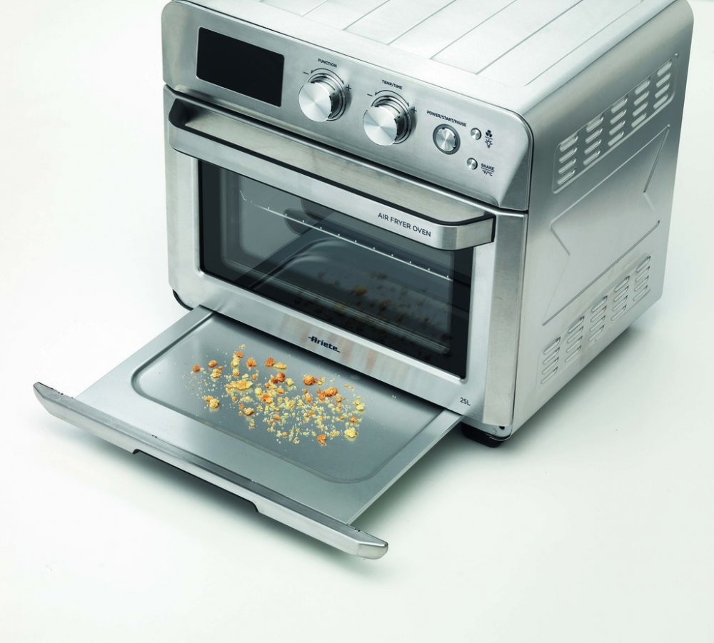 Multifunkční trouba Ariete 4629/11 kombinuje výkon horkovzdušné fritézy a elektrické mini trouby v jednom zařízení. S objemem 25 litrů, 15 automatickými programy a elegantním stříbrným provedením je ideální pro každodenní zdravé vaření bez tuku. Díky rovnoměrné cirkulaci horkého vzduchu získáte perfektní výsledky při fritování, pečení i grilování – a to vše bez kapky oleje navíc. Trouba nabízí intuitivní digitální ovládání s multifunkčním otočným voličem. Programy jsou přizpůsobené různým typům pokrmů – od křupavých hranolků po šťavnaté maso, ryby, sladké pečivo nebo domácí pizzu. Otočný fritovací koš a příslušenství pro rotisserie umožní rovnoměrné opečení bez nutnosti jídlo otáčet. Manuální režim vám dává volnost – nastavte teplotu od 60 do 230 °C a čas dle potřeby. Zdravé vaření bez tuku je hlavní výhodou této multifunkční trouby. Horký vzduch proudí rovnoměrně v celém prostoru a vytváří dokonalou zlatavou kůrku i bez oleje. Nejenže ušetříte kalorie, ale také se vyhnete nepříjemnému zápachu a zbytkovému oleji, což oceníte při každodenním vaření doma. Ariete Airy Fryer 4629/11 tak přináší nejen výborné výsledky, ale i čistší a zdravější kuchyni. Troubu doporučujeme pro každého, kdo hledá kompaktní a výkonný spotřebič do menší kuchyně, na chatu nebo jako druhou troubu do domácnosti. Ideální je pro přípravu hranolek, masa, ryb, zapečených jídel, sladkostí i dehydrataci ovoce. Díky vnitřnímu osvětlení můžete celý proces sledovat v reálném čase a kdykoli zasáhnout. Výhodou je i jednoduchá údržba – odnímatelné části můžete snadno vyčistit. Multifunkční trouba Ariete 4629/11 vám pomůže vařit zdravěji, chytřeji a s menší námahou. Spojení fritézy, trouby, grilu i sušičky v jednom zařízení vám ušetří místo i čas. Dopřejte si pohodlné vaření bez kompromisů – s Ariete si užijete každý recept naplno! Objednávejte pod kat. číslem ART 4629/11