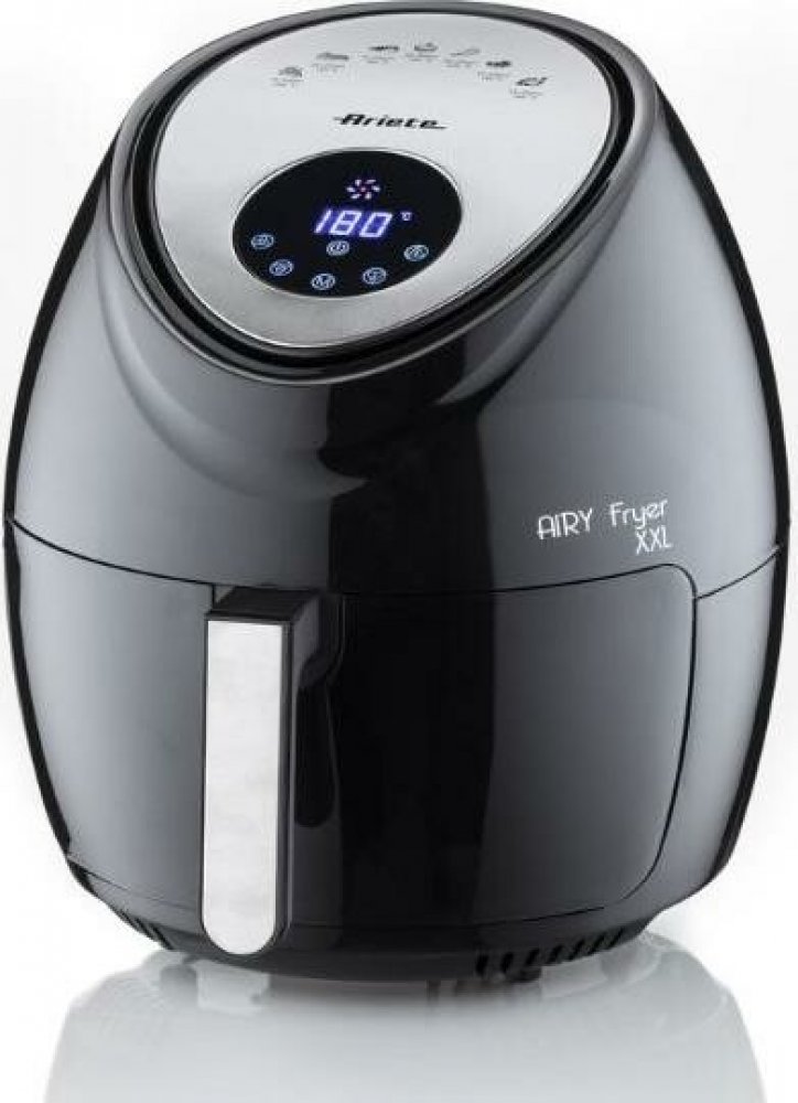 Zdravá strava nemusí znamenat kompromis v chuti. V moderní horkovzdušné fritéze v XXL variantě si můžete smažit výtečné hranolky, řízky, či chipsy bez tuku. Tento kuchyňský pomocník nabízí regulovatelnou teplotu v rozmezí 80 až 200 °C a sedm různých pečících programů, které jednoduše nastavíte pomocí přehledného digitálního displeje. Navíc, díky systému 360° cirkulace vzduchu, jsou všechny pokrmy připraveny rovnoměrně, zachovávají si svou šťavnatost a plnou chuť. Charakteristika produktu: Zdravější alternativa smažení – používáte minimum oleje Kapacita fritovací nádoby 7 l 360° technologie, která připravuje sladké i slané pokrmy rovnoměrně Ovládání: digitální dotykové Nastavitelná teplota 80 – 200 °C Nastavení času až 60 min 7 přednastavených programů pečení: mražené hranolky, maso, mořské plody, kuře, červené maso, pečené dezerty, ryby Smaží bez nepříjemného zápachu Ochrana proti přehřátí Rychlý oběd nebo večeře do 20 minut Horkovzdušná fritéza Ariete Airy Fryer XXL 4618 představuje rychlý způsob přípravy jídel, což je její další zásadní přednost. Kuchyňský spotřebič nabízí řešení pro snížení příjmu nezdravých tuků. S fritézou můžete mít hranolky hotové již za čtvrthodinu a vepřové řízky za pouhých dvacet minut. S prostornou nádobou o objemu 7 l dokážete fritovat až 2,5 kg hranolek najednou, což uspokojí potřeby velké rodiny nebo setkání s přáteli bez potřeby vařit v několika dávkách. Na výběr máte sedm programů Mražené hranolky – skvělé hranolky bez oleje Maso – pečení celých kusů masa Mořské plody – grilování mořských plodů nikdy nebylo snadnější Kuře – kuře je krásně propečené, ale uvnitř zůstane šťavnaté Červené maso – program pro pečení steaků Pečené dezerty – vhodné pro pečení koláčů i vánočního cukroví Ryby – ideální pro pečeného lososa Zdravější vaření bez tuku Na rozdíl od tradičního fritování, kdy musí být potraviny úplně ponořené v oleji, potřebují hranolky z horkovzdušné fritézy pouze nepatrné množství oleje. Výsledkem je, že díky intenzivnímu horkému vzduchu dosáhnou dokonale křupavé konzistence s měkkým a šťavnatým vnitřkem, přičemž obsahují méně tuku. Tyto způsoby přípravy vedou ke zdravějším a lehčím jídlům na trávení. A co je na tom nejlepší? Ušetříte nejen na oleji, ale i na čase stráveném čištěním, protože se vyhnete nepříjemnému odklízení velkého množství použitého oleje. Griluje, smaží i peče Jaký je princip činnosti horkovzdušné fritézy? Uvnitř tohoto přístroje se vytváří teplý vzduch v rozmezí teplot 80 až 200 °C a je pak distribuován po celém vnitřním prostoru, čímž zajišťuje rovnoměrné propečení jídla. Flexibilita nastavení teploty a cyklu umožňuje nejenom fritování, ale také pečení vašich oblíbených sladkostí. Fritéza má navíc dost objemu na to, abyste v ní mohli pohodlně upéct celé kuře.