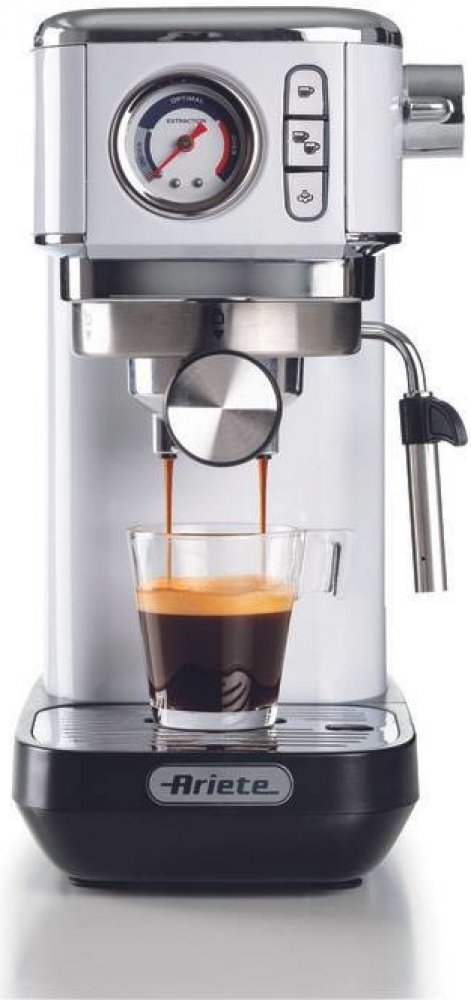 Užijte si dokonalou chuť italského kávového umění s malým pákovým kávovarem Ariete Coffee Slim Machine 1381/34, který zdědil mistrovství od skupiny DeLonghi. Jeho profesionální schopnosti jsou skryty v elegantním těle, které měří pouhých 14 cm na šířku. Tento kompaktní pákový kávovar vám v krátké době připraví exkluzivní espresso s bohatou cremou. A to není vše - s lehkostí zvládne i jemnou mléčnou pěnu na cappuccino, nebo horkou vodu pro váš oblíbený čaj. Hlavní benefity retro pákového kávovaru Ariete: Mini pákový kávovar do malé kuchyně nebo kanceláře – 14 × 29 × 34 cm Tlak 15 barů pro přípravu espressa Nastavitelná výška pro různé typy šálků a hrnků Zahřátí přístroje během 40 vteřin Systém Anti-Drip 3 tlačítka s LED podsvícením: espresso / dva šálky / pára Vhodné i pro ESE pody (kávové kapsle) Manometr pro měření tlaku během přípravy kávy Parní tryska MaxiCappuccino pro extra hebkou mléčnou pěnu Horká voda Automatické vypnutí po 30 minutách Zvládne vše - espresso, cappuccino i čaj S pákovým kávovarem o síle 15 barů si doma snadno připravíte dokonalé espresso. Tento přístroj rovněž nabízí funkci horké vody, díky které si můžete vychutnat skvělé americano či připravit čaj. Jednoduchým otočením knoflíku na trysce můžete aktivovat parní funkci, která vám umožní vykouzlit jemnou mléčnou pěnu pro výrobu oblíbeného cappuccina, flat white nebo latté. Manometr pro dokonalý přehled Pákový kávovar s retro designem je vybaven tlakoměrem, který vám umožní přesně sledovat optimální tlak pro ideální přípravu kávy. Díky tomuto manometru můžete mít jistotu, že každé espresso bude přesně podle vašich představ. Vhodný pro všechny velikosti šálek Tento retro styl pákového kávovaru umožňuje nastavení výšky, což vám dovoluje používat šálky a sklenice různých velikostí, od malých šálků na espresso až po velké sklenice na latté. Je to skvělé pro domácnosti a kavárny, které podávají různé typy káv. S touto vlastností můžete pohodlně používat svůj oblíbený hrnek a užívat si kávu přesně podle svého gusta. Parní tryska MaxiCappuccino Parní tryska MaxiCappuccino je speciálně vyvinuta pro jednoduché a rychlé vytváření mléčné pěny pro cappuccino a jiné mléčné kávové nápoje. Tato tryska využívá ideální parní tlak, aby vyrobila bohatou a jemnou pěnu. Díky jejímu snadnému ovládání a efektivitě se stává nezbytným pomocníkem pro každého kávového nadšence. Retro design a kompaktním těle Pro malou kuchyň je ideální pákový kávovar s šířkou pouze 14 centimetrů, který snadno zapadne i do omezených prostorů. Tento kompaktní model s retro designem dodá každé kuchyni na eleganci. Jeho stylový vzhled je kombinací vintage a moderních prvků, což z něj činí nejen praktický, ale i esteticky přitažlivý přístroj.