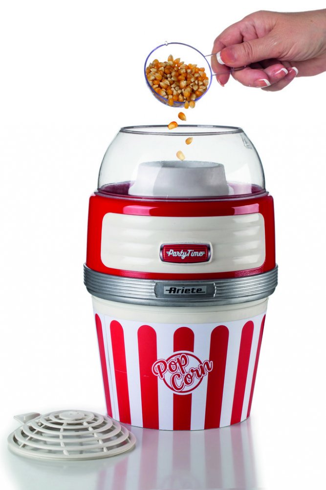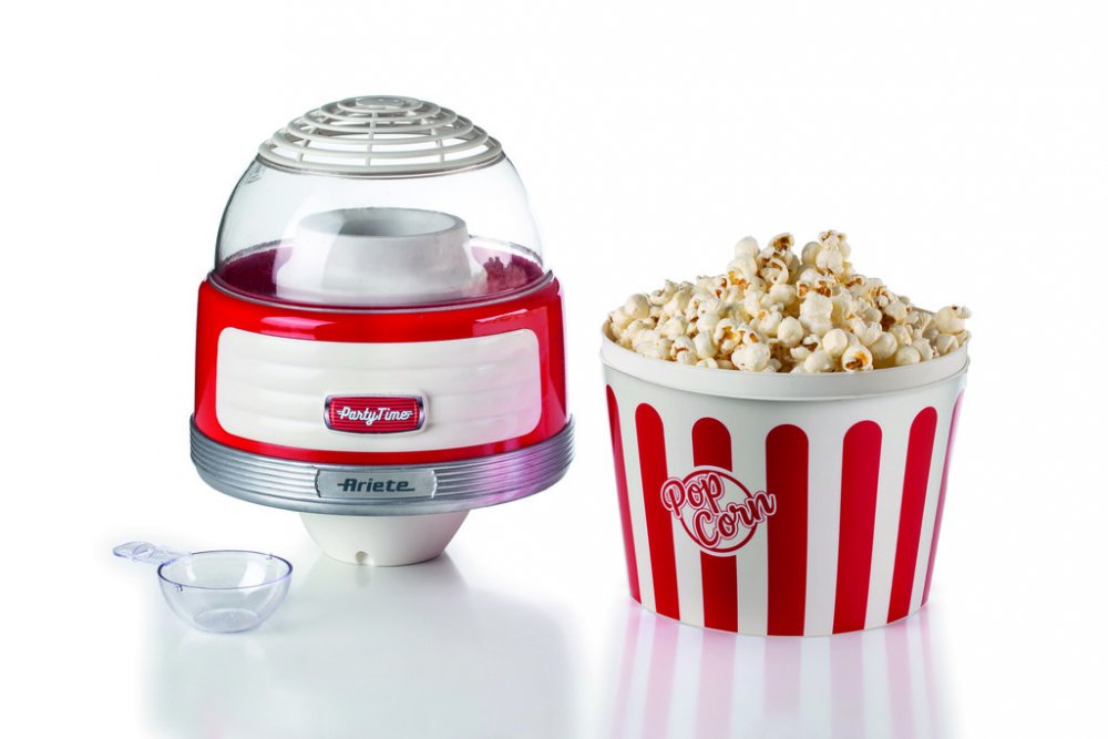 Domácí kino a křupavý popcorn Chutný a voňavý domácí popcorn za méně než 2 minuty. Zavolejte přátelům, pozvěte je na filmový večírek, a pak už jen hoďte nohy na gauč a chroupejte čerstvou pochoutku. Atmosféra jako v kině je s domácím XL popkornovačem Ariete Party Time zaručena. Klíčové vlastnosti Příprava horkým vzduchem – bez tuku Odměrka na dávkování 60 gramů kukuřice do 2 minut Vyjímatelná miska s originálním designem Hodí se na dětskou oslavu nebo zahradní party Americký retro design z 50. let Příkon 1100 W Snadná údržba i čištění Nízká hmotnost – snadno ho přenesete z místa na místo Jak na domácí popcorn? Domácí máslový, slaný nebo sladký popcorn? Receptů, jak udělat domácí napukanou kukuřici je celá řada. Nejsnazší je ale tuhle lahůdku připravit v popcornovači a ještě teplou ji v míse dochutit. Použít můžete speciální připravené směsi, sýr (nejvíc se hodí parmazán) nebo cukr či med. Retro, které je in XL popcornovač Party Time patří do série spotřebičů inspirované designem amerických 50. let. Hravé barvy, oblé linie a klasické prvky přitáhnou pozornost a vytvoří nezapomenutelný zážitek. Pusťte uzdu své fantazii, udělejte si s rodinou nebo přáteli.
