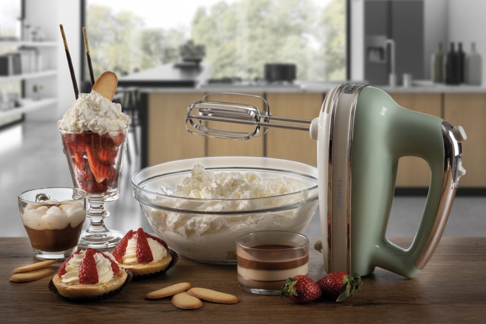 Ariete Vintage Hand Mixer 1548/04 zelený ruční šlehač s výkonem 450 W Ruční mixér Ariete 1548/04 Vintage Hand Mixer spojuje vysoký výkon a estetický retro design, který skvěle doplní každou kuchyni. Tento šikovný pomocník je vybaven výkonným 450W motorem a nabízí 5 rychlostí včetně turbo režimu, takže si hravě poradí s různými úkoly, od šlehání smetany po hnětení těsta. Příslušenství obsahuje nerezové hnětací a šlehací metly, které zajišťují precizní výsledky, a jejich snadná údržba – lze je mýt v myčce – vám ušetří čas a energii. Díky ergonomickému designu rukojeti je práce se šlehačem pohodlná i při delším používání. Snadné ovládání a tlačítko pro uvolnění metly zaručuje rychlou výměnu příslušenství. Ať už připravujete domácí pečivo nebo omáčku, tento šlehač vám poskytne přesnost a kontrolu, kterou potřebujete k dosažení perfektních výsledků. Tento ruční mixér nebo chcete-li ruční šlehač z kolekce Vintage od Ariete vdechne vaší kuchyni teplý retro nádech a zároveň vám nabídne všestranného pomocníka pro každodenní vaření a pečení. Objednávejte pod kat. číslem ART 1548/04