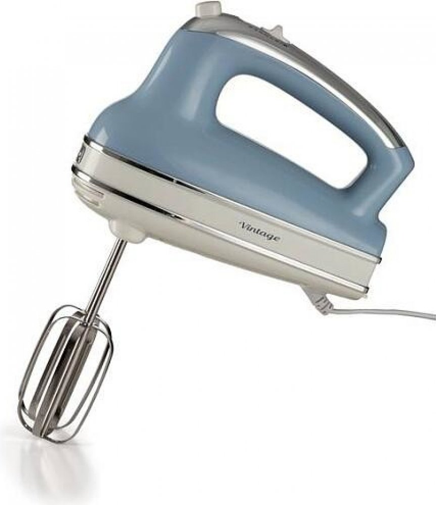 Ariete Vintage Hand Mixer 1548/05 modrý ruční šlehač s výkonem 450 W Ruční mixér Ariete 1548/05 Vintage Hand Mixer spojuje vysoký výkon a estetický retro design, který skvěle doplní každou kuchyni. Tento šikovný pomocník je vybaven výkonným 450W motorem a nabízí 5 rychlostí včetně turbo režimu, takže si hravě poradí s různými úkoly, od šlehání smetany po hnětení těsta. Příslušenství obsahuje nerezové hnětací a šlehací metly, které zajišťují precizní výsledky, a jejich snadná údržba – lze je mýt v myčce – vám ušetří čas a energii. Díky ergonomickému designu rukojeti je práce se šlehačem pohodlná i při delším používání. Snadné ovládání a tlačítko pro uvolnění metly zaručuje rychlou výměnu příslušenství. Ať už připravujete domácí pečivo nebo omáčku, tento šlehač vám poskytne přesnost a kontrolu, kterou potřebujete k dosažení perfektních výsledků. Tento ruční mixér nebo chcete-li ruční šlehač z kolekce Vintage od Ariete vdechne vaší kuchyni teplý retro nádech a zároveň vám nabídne všestranného pomocníka pro každodenní vaření a pečení. Objednávejte pod kat. číslem ART 1548/05