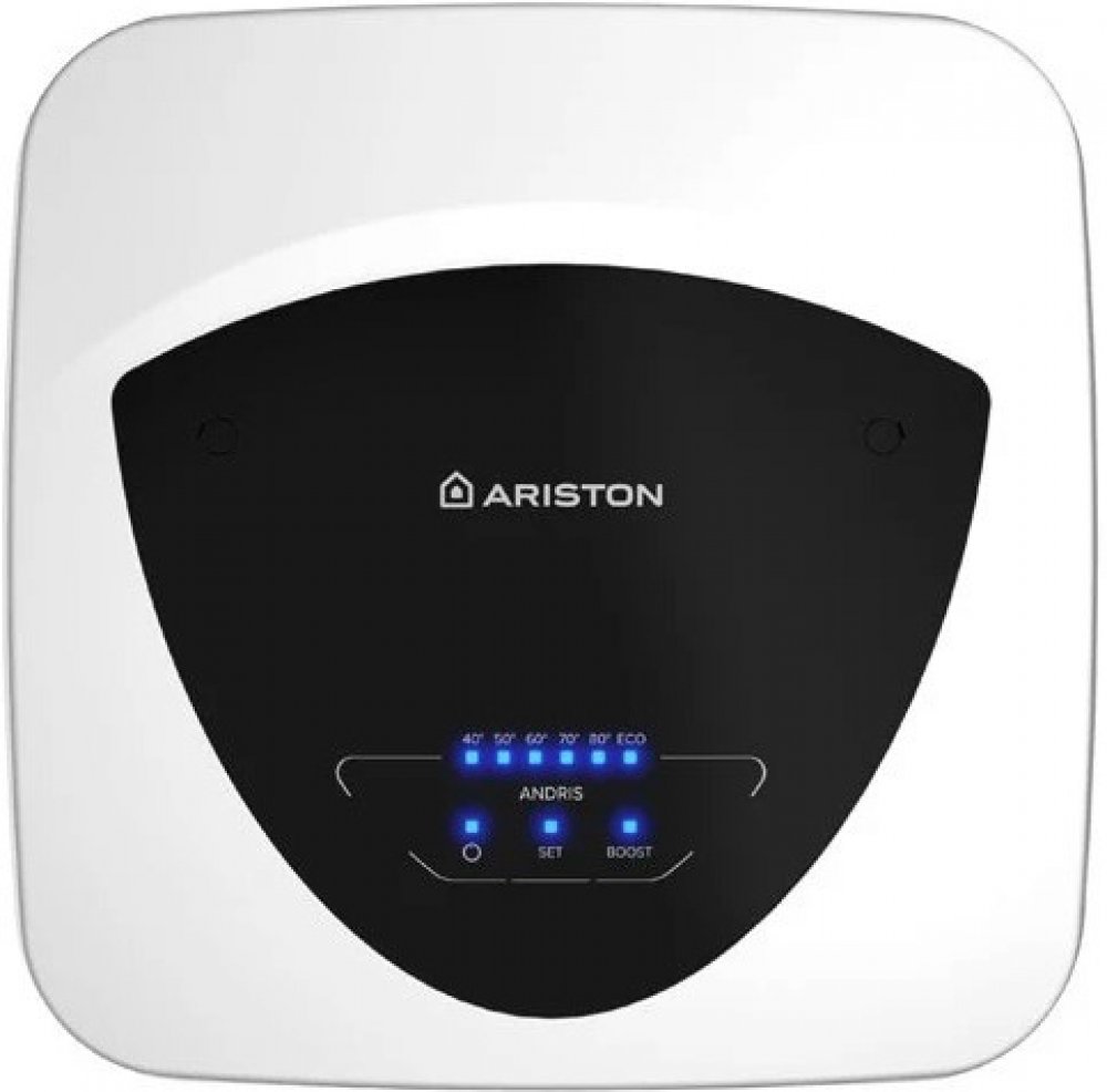 ARISTON Andris Elite 15 PL EUVýkonný kompaktní elektrický ohřívač vody s montáží nad umyvadloAndris Elite 15 PL EU je kompaktní elektrický ohřívač vody s termostatem, který je mimořádně šetrný (energetická třída A). Disponuje výkonem 2 000 W, kapacitou 15 litrů a maximální provozní teplotou 80 °C. Jedná se o variantu s montáží nad umyvadlo a je vhodná v menších odběrných místech, kde je potřeba zajistit teplou vodu. Nabízí chytrý displej i funkce, například Boost, která dočasně zvýší teplotu vody. Poskytuje 100% bezpečnost a vodu ohřeje za 26 minut. Je vyroben z odolných materiálů, které brání vzniku koroze, napomáhají udržet již ohřátou vodu a zajišťuje dlouhou životnost. Ochrana IPX4 poskytuje ochranu před stříkající vodou. Zařízení váží pouze 7,5 kilogramu a jeho instalace je snadná. Model Andris Elite je vhodný zejména pro energeticky úsporné lidi, co si dopřávají vysoký komfort a mají rádi integritu chytré domácnosti. Klíčové vlastnosti bojleru ARISTON Andris Elite...