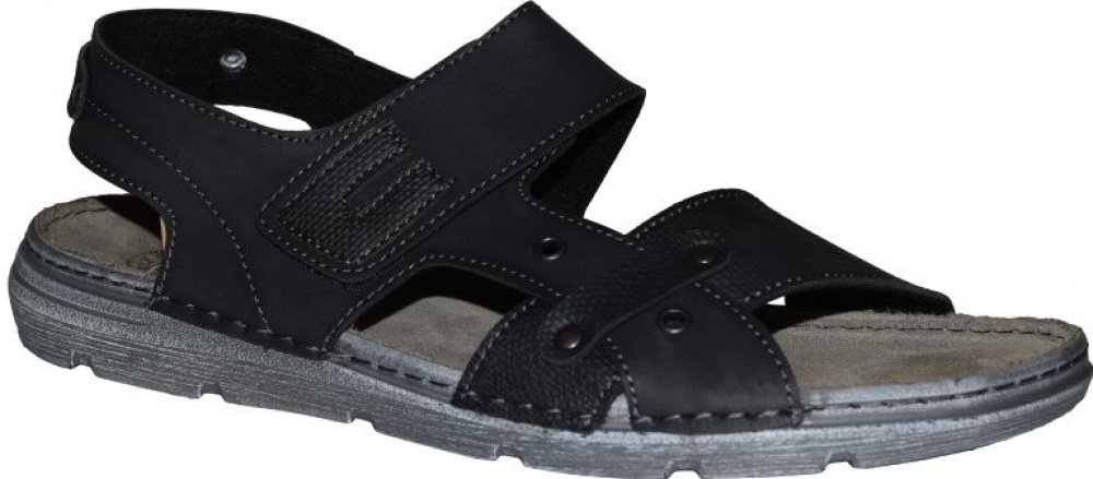 U těchto pánských sandálů oceníte měkce polstrovanou koženou stélku. Svršek tvoří černé pásky a jeden má zapínání na suchý zip. Podešev je flexibilní a poskytne také komfort při nošení.