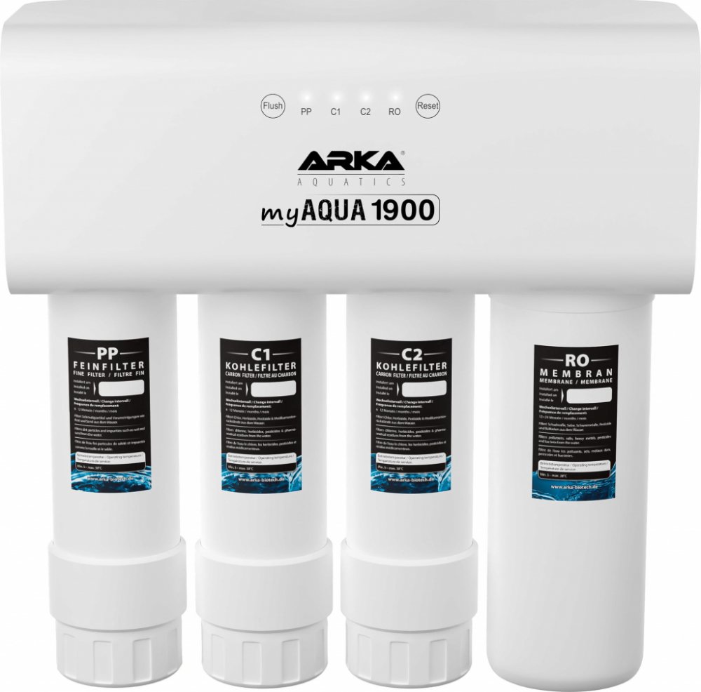Profesionální osmóza s výkonem 1900l / den Hlavní přednosti: Rychle a účinně filtruje až 99 % solí, bakterií a znečišťujících látek (jako jsou dusičnany, fosfáty a těžké kovy) z vodovodní vody, takže je bezpečné pro použití v jakémkoli mořském i sladkovodním akváriu. Dosahuje vydatnosti vody až 1:1 a obsahuje pouze přírodní filtrační materiály bez chemických přísad. Lze připojit k běžně dostupným domácím vodovodním ventilům díky dodanému příslušenství.3/4 a 3/8 60 vteřinový automatický cyklus proplachu membrány stisknutím tlačítka "FLUSH" Vhodné pro: Sladkovodní akvária Mořská akvária Laboratoře Průmysl Technické parametry: Osmická voda/zbytková voda Výdatnost cca. 1 : 1 - 1,5 Kapacita zadržování soli až 99 % Průtok max. 1,32 l/min Provozní tlak 1 – 4 Bar Užitná teplota vody 5 – 38°C Výkon 70W Napětí 24V Rozměry: Výška: 434 mm Šířka: 418 mm Hloubka: 163 mm Vestavěná ochranná funkce Osmoza ARKA myAQUA® 1900 má funkci automatického vypnutí. Po 12 hodinách nepřetržitého provozu přeruší výrobu osmotické vody. LED diody se poté rozsvítí červeně. Chcete-li pokračovat ve výrobě osmózové vody, krátce odpojte zařízení od napájení. Systém pak pokračuje v normálním chodu. Po Rozbalení může být uvnitř osmozy malé množství vody a vlhkosti, jelikož je zařízení dodavatelem testováno vodním tlakem z důvodu těsnosti, aby se předešlo reklamacím a havariím. Obsah balení: Hadička 300 cm (přívodní voda), 600 cm trubka (čistá voda a odpadní voda), T-kus 3/8 – 3/8 – 3/8 vč. ventil, montáž na stěnu, Elektrický zdroj na 24V, Vypouštěcí svorka, adaptér pro připojení vody 3/4 - 3/8, uzavírací ventil 1/4 - 1/4Po Rozbalení může být uvnitř osmozy malé množství vody a vlhkosti, jelikož je zařízení dodavatelem testováno vodním tlakem z důvodu těsnosti, aby se předešlo reklamacím a havariím.