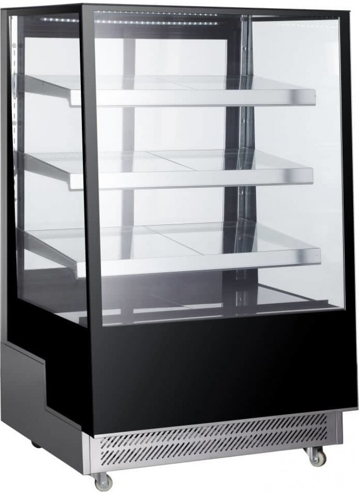 Chladicí vitrína od firmy Arktic, katalogové číslo 233443, objem 500 l. Vitrína je vybavena 3 přemístitelnými skleněnými policemi, které jsou lehce nakloněny směrem k zákazníkům.