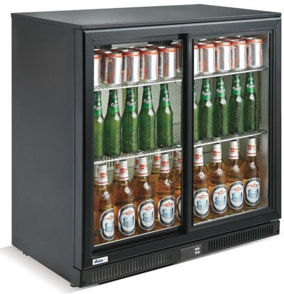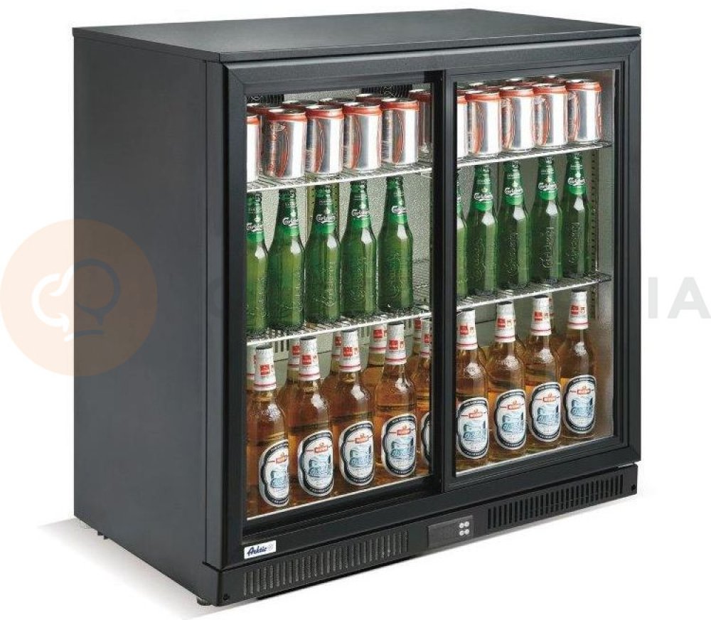 Rychlá prezentace a přístup: posuvné dveře šetří prostor v zázemí baru; LED osvětlení zlepšuje prodejnost nápojů. Stabilní teplota 0–10 °C udržuje kvalitu nápojů a předchází plýtvání potravinami. Ventilované chlazení a automatické odmrazování minimalizují potřebu častého servisu. Díky kompaktním rozměrům se zařízení snadno umisťuje do zázemí i mezi další gastro vybavení (mrazicí skříně, mrazáky apod.).
