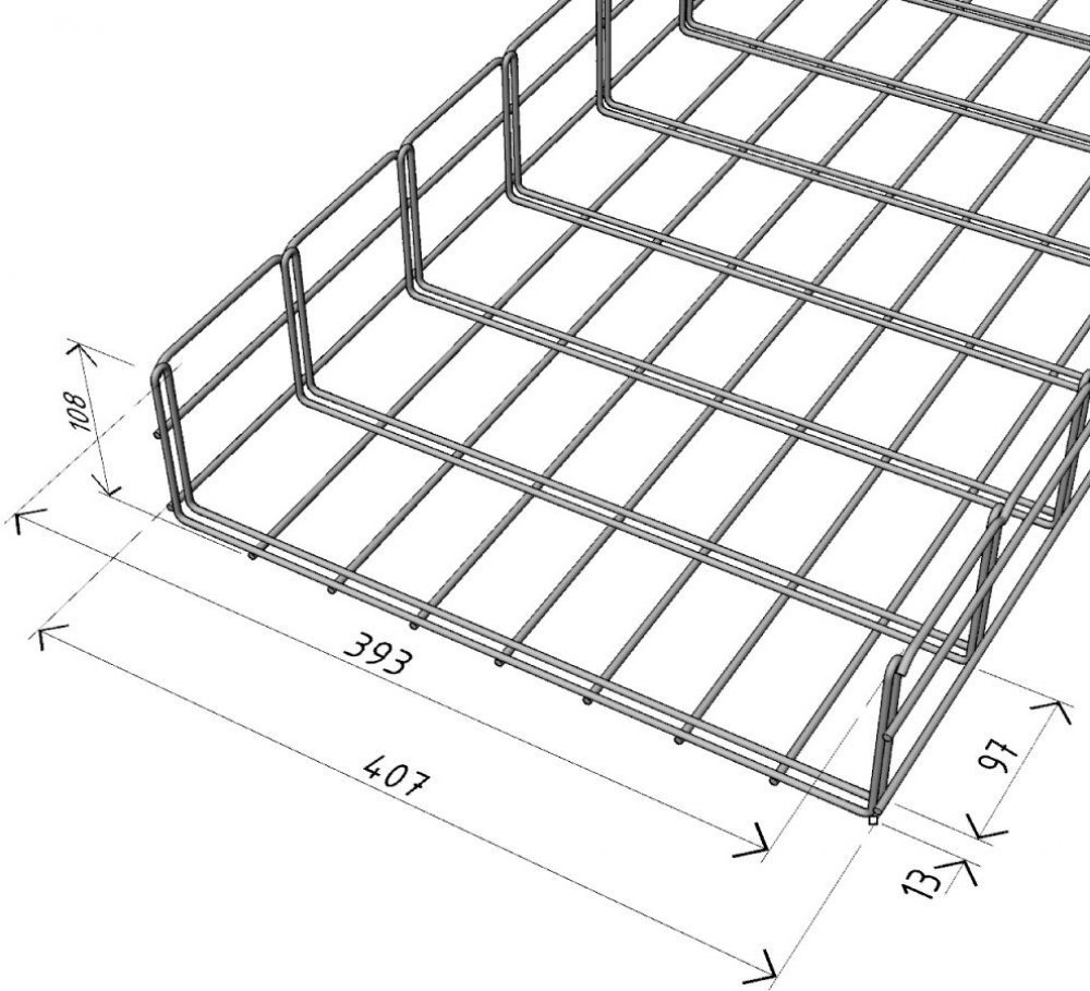 Drátěné kabelové žlaby MERKUR 2 jsou určeny pro montáž kabelové trasy silnoproudých světelných a motorických rozvodů, slaboproudů, měření a regulace a rozvodu jiných médií. Jednotlivé díly jsou vyrobeny z ocelového nebo nerezového drátu v povrchové úpravě žárový nebo galvanický zinek. Výhodou systému MERKUR je velmi snadná montáž díky nízké hmotnosti, velké variabilitě a snadnému odbočování a křížení tras, jednoduché uložení a odbočení kabelů ze žlabu bez nutnosti použití průchodky a větší proudová zatížitelnost kabelů uložených v těchto žlabech. Povrchová úprava: GZ - galvanicky zinkováno Rozměry žlabu (š x v x d): 400 x 100 x 2000 mm Balení: 4 m