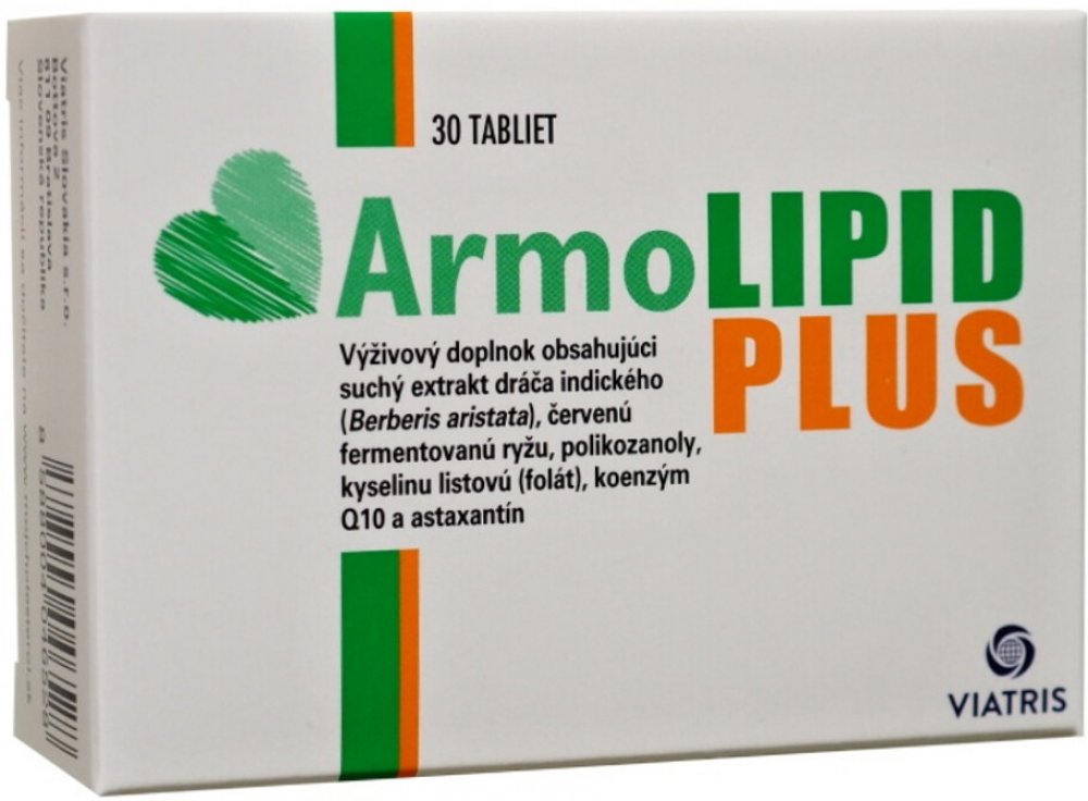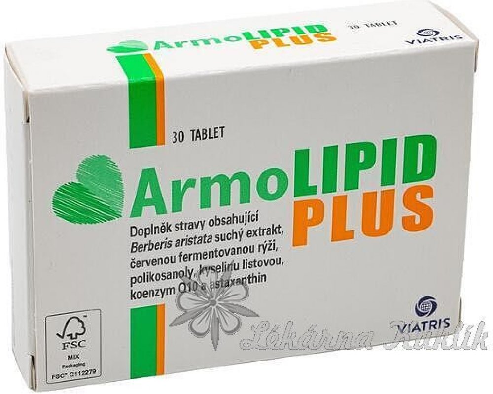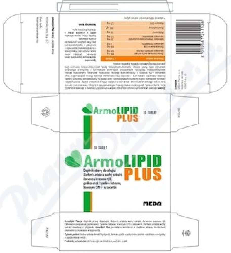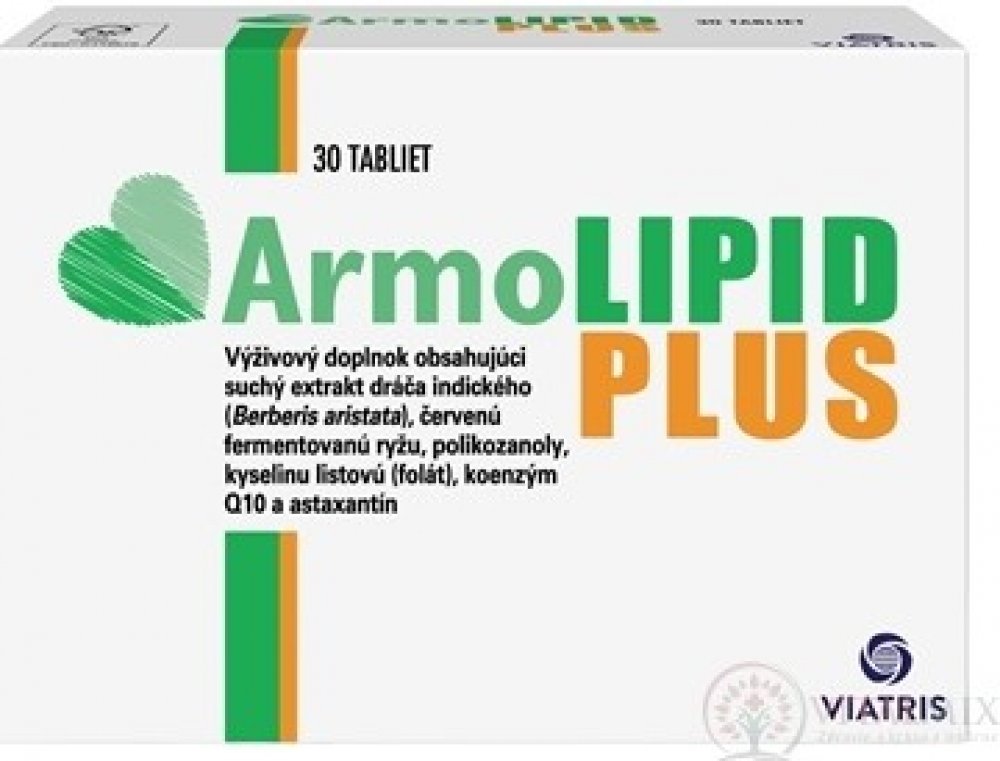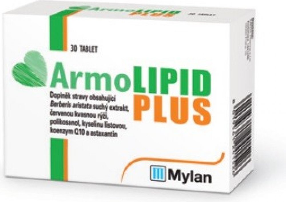 Armolipid Plus je doplněk stravy obsahující suchý extrakt z Berberis aristata, fermentovanou červenou kvasnou rýži, polikosanol, kyselinu listovou, koenzym Q10 a astaxantin.