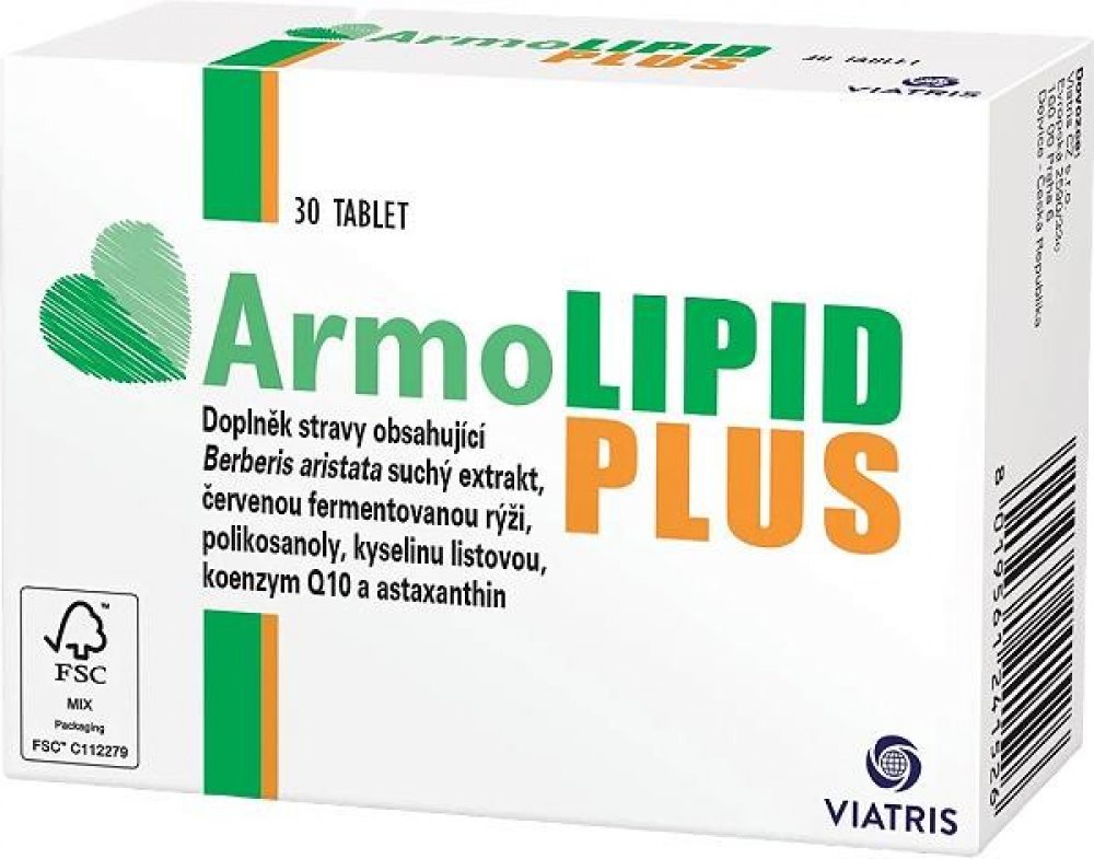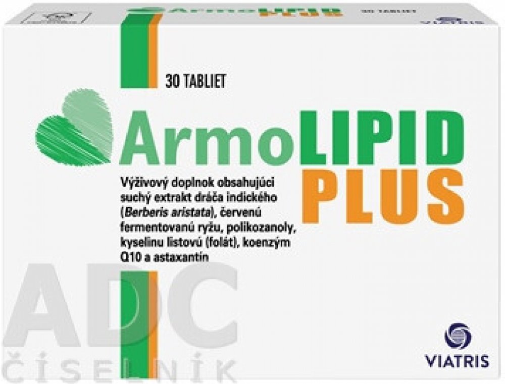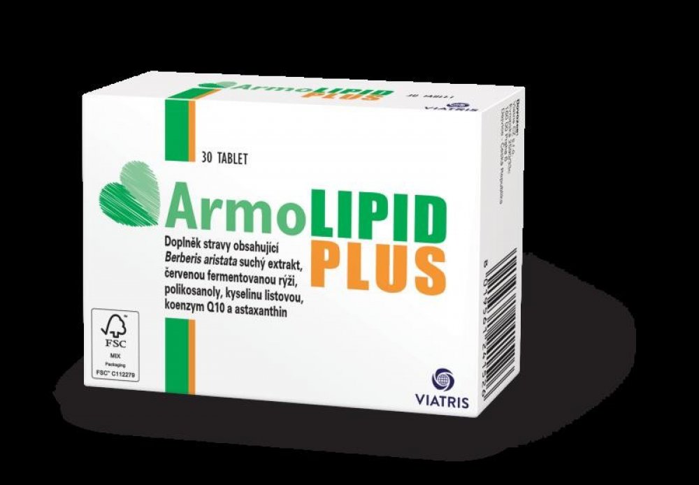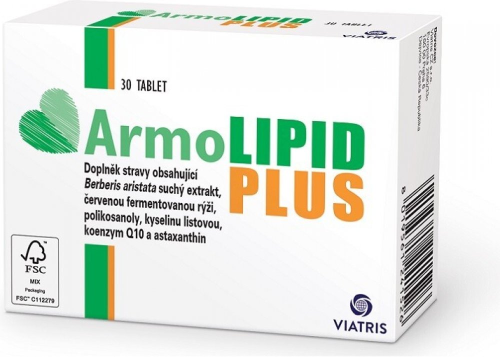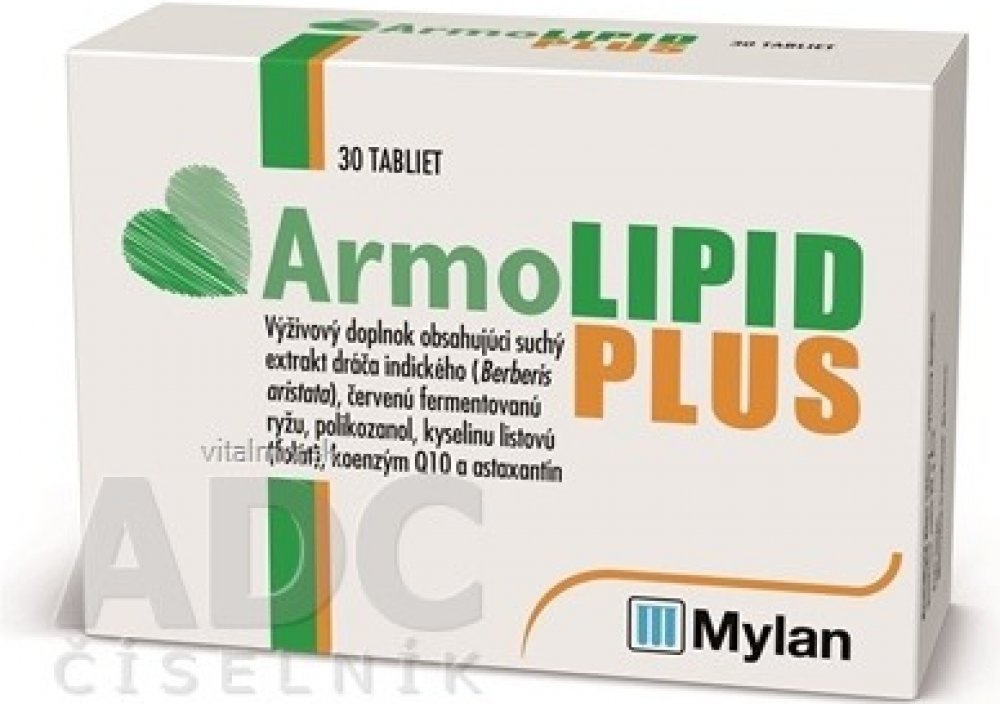 Armolipid Plus je doplněk stravy obsahující suchý extrakt z Berberis aristata, fermentovanou červenou kvasnou rýži, polikosanol, kyselinu listovou, koenzym Q10 a astaxantin.