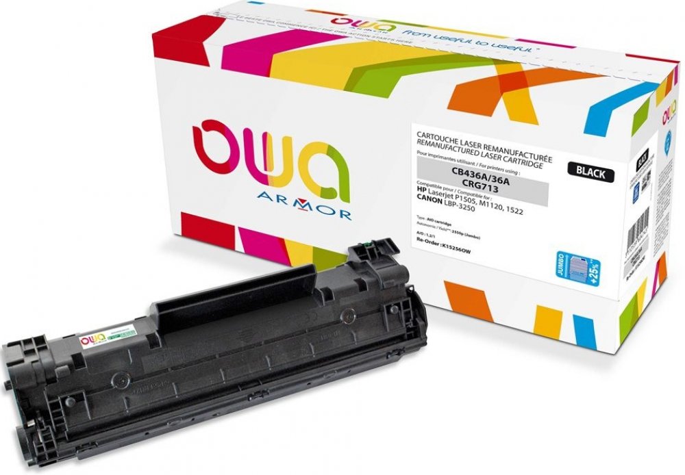 Alternativní černá tonerová kazeta ARMOR s označením K15256 je kompatibilní s originální kazetou HP CB436A a je určena pro laserová zařízení Hewlett Packard LJ P1505/ P1522/ M1120/ M1522. Tato alternativa umožňuje vytištění až 2 550 stran při 5% pokrytí (dle normy pro testování výtěžnosti ISO/IEC 19752).