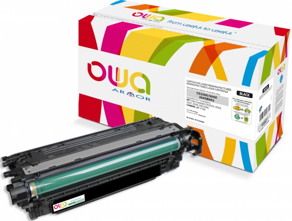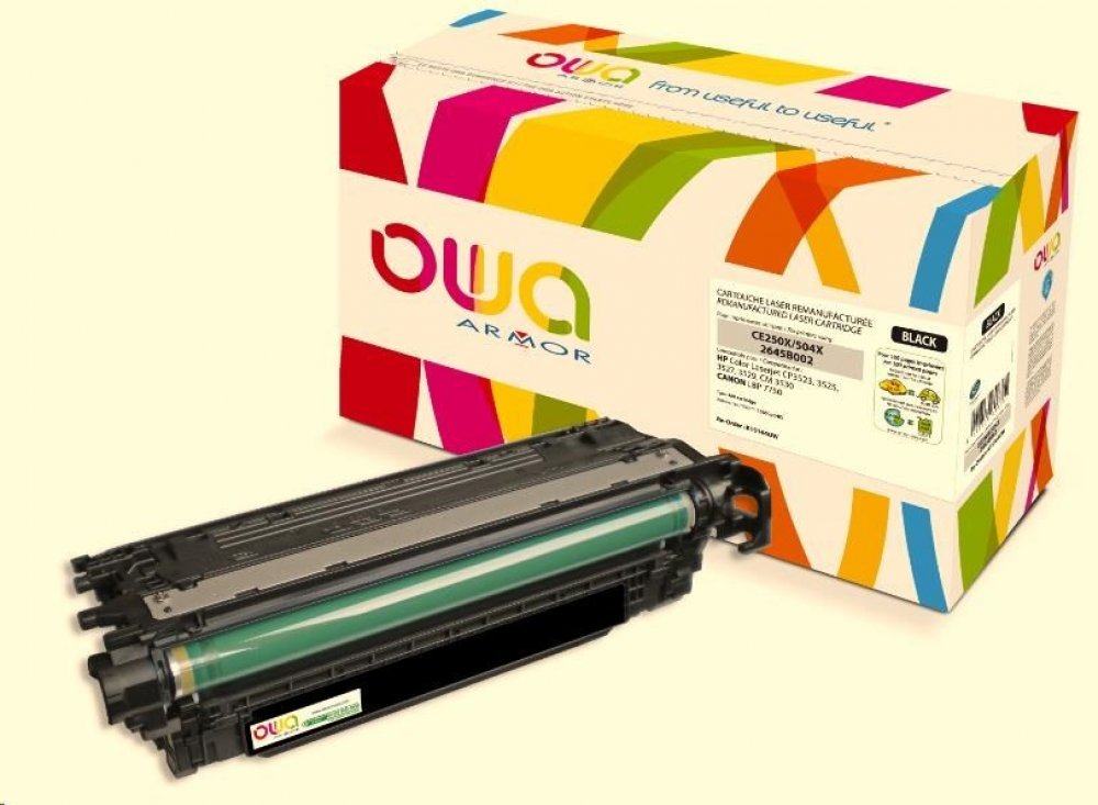 Vyhledané zboží je kompatibilní s těmito výrobky: HP-COLOR LASERJET CM 3520 series HP-COLOR LASERJET CM 3523 HP-COLOR LASERJET CM 3525 HP-COLOR LASERJET CM 3525 DN HP-COLOR LASERJET CM 3525 N HP-COLOR LASERJET CM 3525 X HP-COLOR LASERJET CM 3527 HP-COLOR LASERJET CM 3529 HP-COLOR LASERJET CM 3530 FS MFP HP-COLOR LASERJET CM 3530 MFP V případě, že máte nejasnosti ohledně kompatibility, obraťte se prosím na bezplatnou infolinku 800 157 928. Další informace na www.armor.cz Tonery OWA ARMOR – řešení pro zodpovědné Tonery OWA ARMOR – Unikátní kombinace ekonomického a ekologického řešení • Velmi kvalitní řada tonerových kazet OWA ARMOR do téměř všech tiskáren na trhu. • Na všechny tonery OWA ARMOR je poskytován bezkonkurenční servis v podobě doživotní záruky na kazety, převzetí záruky za nové tiskárny a zpětný odběr kazet. • ARMOR ručí za kvalitu tisku. • Žádný z tonerů OWA ARMOR neporušuje patentové právo. • Tonery OWA ARMOR vám umožňují splnit požadavky společenské odpovědnosti firem (CSR) v oblasti ochrany životního prostředí. • Při zapojení se do programu OWA získáváte automaticky tzv. Materiálový report, který můžete zahrnout do vašeho CSR reportu. Podívejte se, jak program OWA funguje https://www.youtube.com/watch?v=oLTvCXQd2jU S tonery OWA Armor zároveň získáváte: • ZDARMA zapojení do programu odběru vypsaných tonerů včetně získání tzv. materiálového reportu – šetříte životní prostředí. • ZDARMA technickou podporu na zákaznické lince 800 157 928. • ZDARMA 100% servis v podobě sítě specializovaných firem s operativním výjezdem technika na místo do 48 hodin. • ZDARMA širokou marketingovou podporu pro partnery • Jistotu, že žádné tonery OWA ARMOR neporušují patenty a jsou zdravotně nezávadné. • Francouzskou kvalitu prověřenou mezinárodními certifikáty. • Doživotní záruku na tonery OWA ARMOR. • Záruku na nové tiskárny.