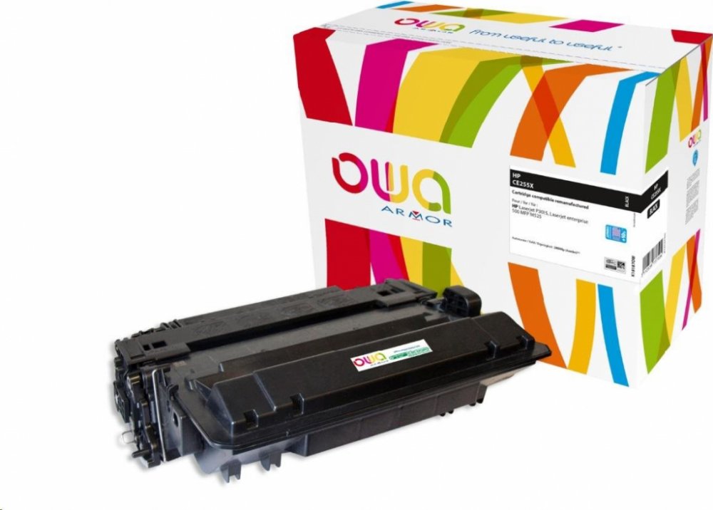 zboží je kompatibilní s těmito výrobky: HP LaserJet P3015 (CE255X/55X) Canon LBP 3580, 6750, 6780 (724H) V případě, že máte nejasnosti ohledně kompatibility, obraťte se prosím na bezplatnou infolinku 800 157 928. Další informace na www.armor.cz Tonery OWA ARMOR – řešení pro zodpovědné Tonery OWA ARMOR – Unikátní kombinace ekonomického a ekologického řešení • Velmi kvalitní řada tonerových kazet OWA ARMOR do téměř všech tiskáren na trhu. • Na všechny tonery OWA ARMOR je poskytován bezkonkurenční servis v podobě doživotní záruky na kazety, převzetí záruky za nové tiskárny a zpětný odběr kazet. • ARMOR ručí za kvalitu tisku. • Žádný z tonerů OWA ARMOR neporušuje patentové právo. • Tonery OWA ARMOR vám umožňují splnit požadavky společenské odpovědnosti firem (CSR) v oblasti ochrany životního prostředí. • Při zapojení se do programu OWA získáváte automaticky tzv. Materiálový report, který můžete zahrnout do vašeho CSR reportu. Podívejte se, jak program OWA funguje https://www.youtube.com/watch?v=oLTvCXQd2jU S tonery OWA Armor zároveň získáváte: • ZDARMA zapojení do programu odběru vypsaných tonerů včetně získání tzv. materiálového reportu – šetříte životní prostředí. • ZDARMA technickou podporu na zákaznické lince 800 157 928. • ZDARMA 100% servis v podobě sítě specializovaných firem s operativním výjezdem technika na místo do 48 hodin. • ZDARMA širokou marketingovou podporu pro partnery • Jistotu, že žádné tonery OWA ARMOR neporušují patenty a jsou zdravotně nezávadné. • Francouzskou kvalitu prověřenou mezinárodními certifikáty. • Doživotní záruku na tonery OWA ARMOR. • Záruku na nové tiskárny.