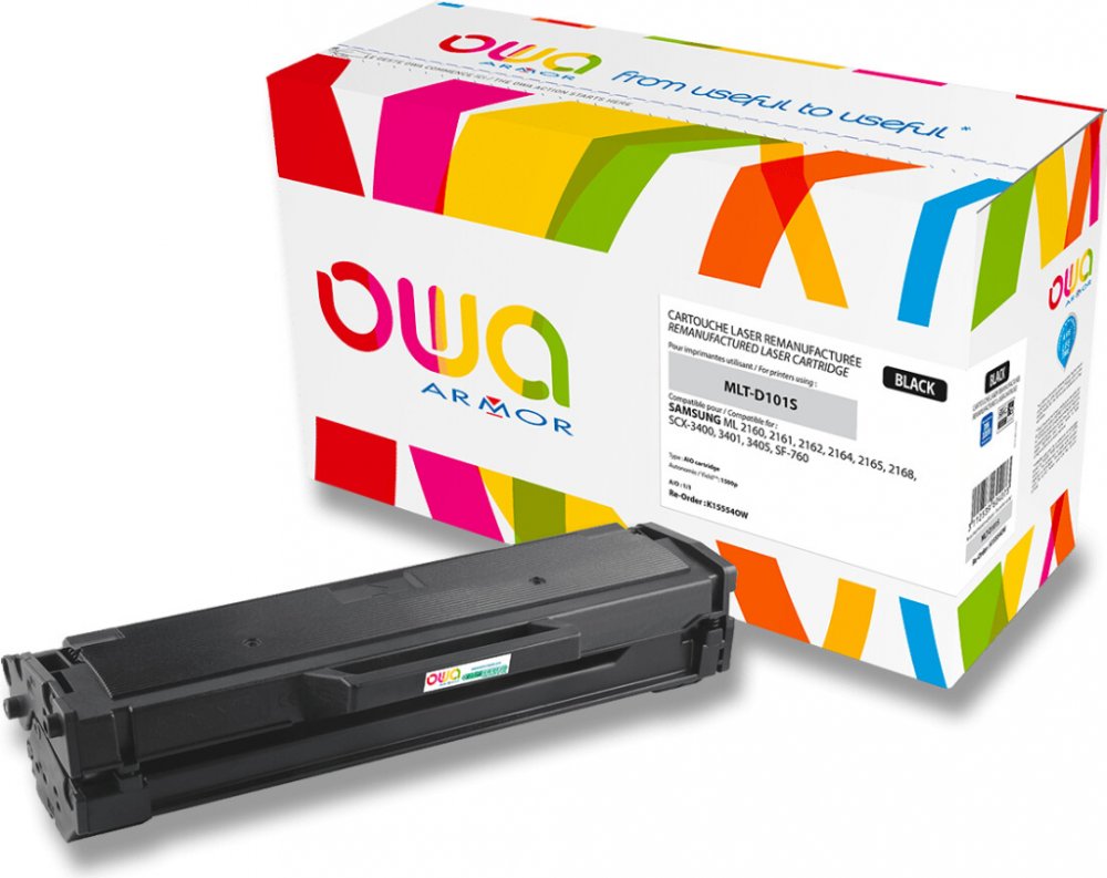 Laserový toner firmy ARMOR černé barvy, 1 500 stran Kompatibilní produkty: SAMSUNG-ML 2160 SAMSUNG-ML 2161 SAMSUNG-ML 2162 SAMSUNG-ML 2165 SAMSUNG-ML 2168 SAMSUNG-SCX 3400 SAMSUNG-SCX 3401 SAMSUNG-SCX 3405 SAMSUNG-SF 760 P V případě, že máte nejasnosti ohledně kompatibility, obraťte se prosím na bezplatnou infolinku 800 157 928. Další informace na www.armor.cz Tonery OWA ARMOR – řešení pro zodpovědné Tonery OWA ARMOR – Unikátní kombinace ekonomického a ekologického řešení • Velmi kvalitní řada tonerových kazet OWA ARMOR do téměř všech tiskáren na trhu. • Na všechny tonery OWA ARMOR je poskytován bezkonkurenční servis v podobě doživotní záruky na kazety, převzetí záruky za nové tiskárny a zpětný odběr kazet. • ARMOR ručí za kvalitu tisku. • Žádný z tonerů OWA ARMOR neporušuje patentové právo. • Tonery OWA ARMOR vám umožňují splnit požadavky společenské odpovědnosti firem (CSR) v oblasti ochrany životního prostředí. • Při zapojení se do programu OWA získáváte automaticky tzv. Materiálový report, který můžete zahrnout do vašeho CSR reportu. Podívejte se, jak program OWA funguje https://www.youtube.com/watch?v=oLTvCXQd2jU S tonery OWA Armor zároveň získáváte: • ZDARMA zapojení do programu odběru vypsaných tonerů včetně získání tzv. materiálového reportu – šetříte životní prostředí. • ZDARMA technickou podporu na zákaznické lince 800 157 928. • ZDARMA 100% servis v podobě sítě specializovaných firem s operativním výjezdem technika na místo do 48 hodin. • ZDARMA širokou marketingovou podporu pro partnery • Jistotu, že žádné tonery OWA ARMOR neporušují patenty a jsou zdravotně nezávadné. • Francouzskou kvalitu prověřenou mezinárodními certifikáty. • Doživotní záruku na tonery OWA ARMOR. • Záruku na nové tiskárny.