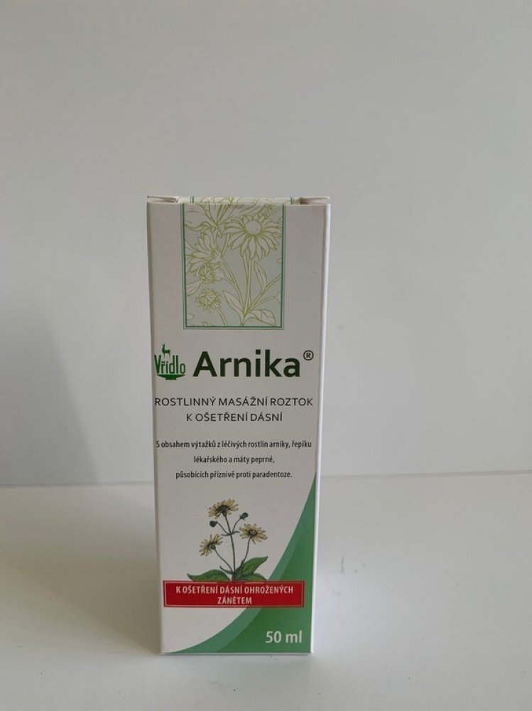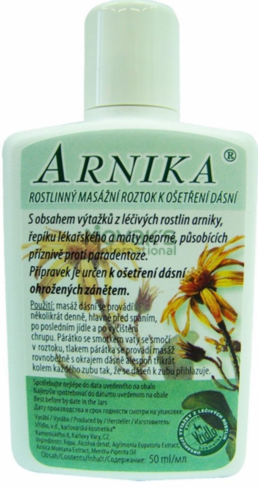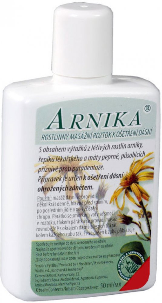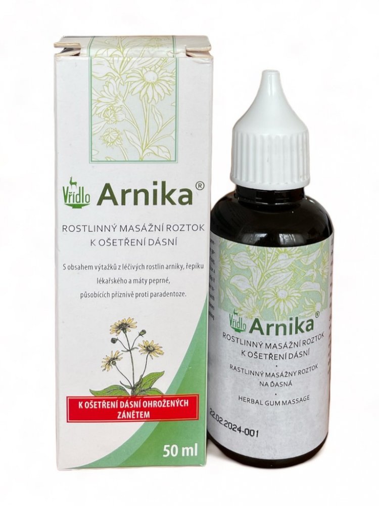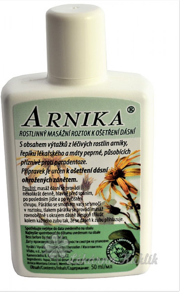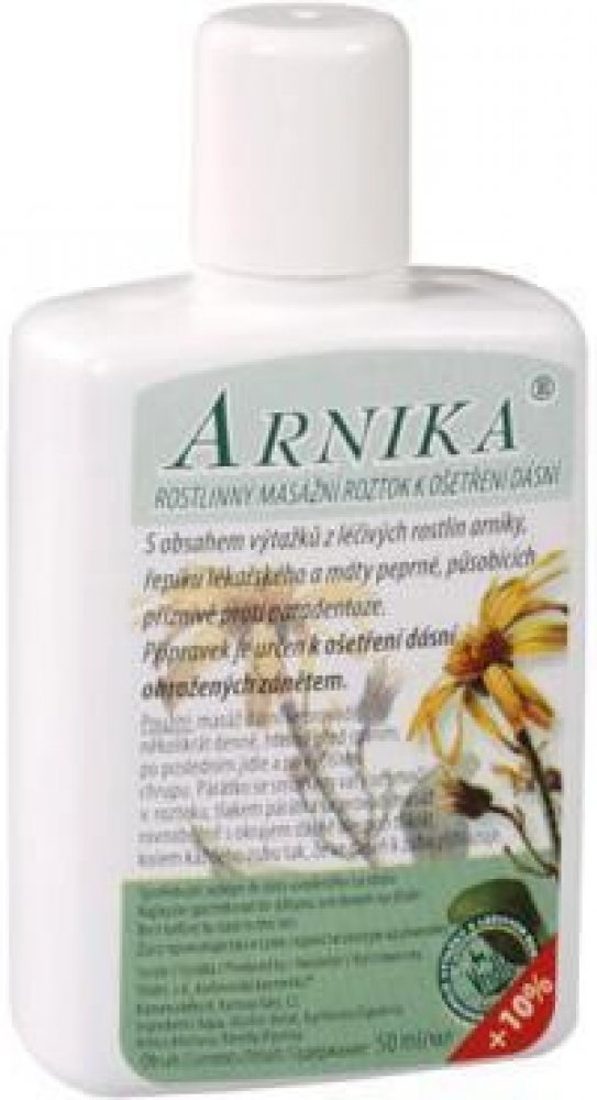 Obsahuje čistý výtažek z léčivé rostliny Arniky horské, která prokrvuje a maximalizuje účinek masáže postižených dásní. Dále obsahuje řepík lékařký a mátu peprnou.
