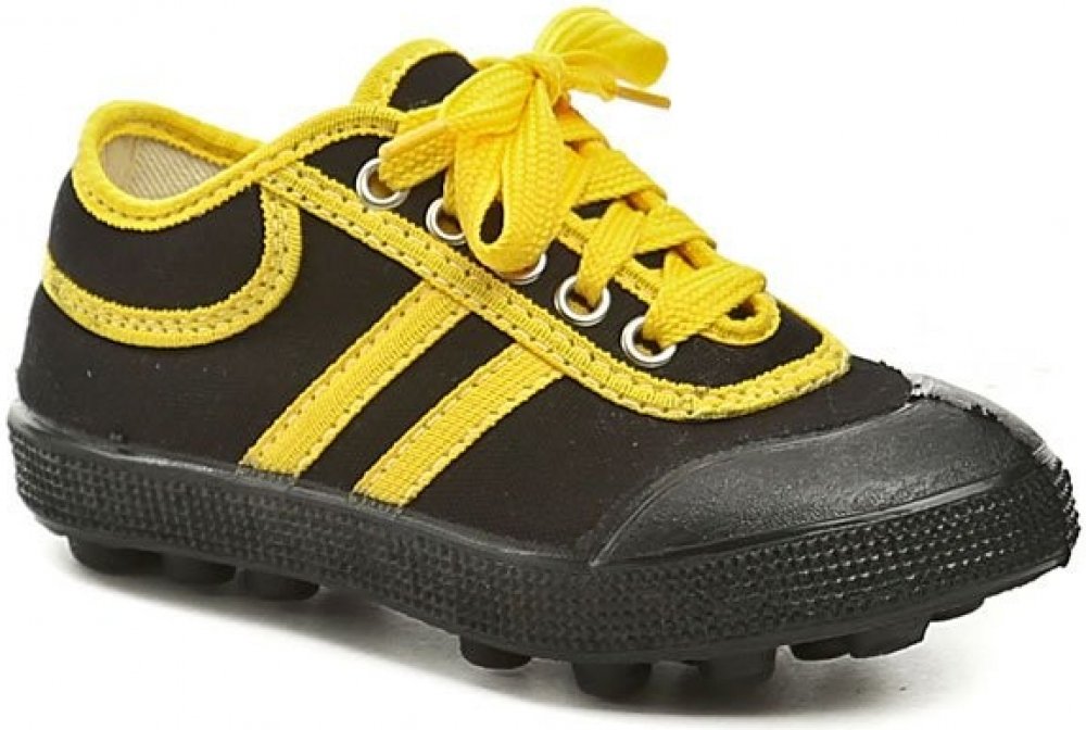 Gumotextilní kopačky jsou klasické fotbalové kopačky určené k použití na trávu či štěrk, na trénink a pro rekreační hráče. Podešev kopačky je spojená se svrškem spečením. Blíže jde o dětskou celoroční sportovní fotbalovou obuv, která je vyrobena z textilního materiálu v kombinaci s podešví vyrobenou technologií přímého nástřiku. Pokud Vaše ratolest nebo vy s fotbalem teprve začínáte nebo již máte nějaké zkušenosti a potřebujete boty na trénink, gumotextilní kopačky jsou vhodnou volbou. materiál: svršek segel III BA, podšívka kepr BA, stélka aratex BA. Obuv čistěte v ruce, nikdy neperte v pračce.velikost boty EU délka vnitřní stélky 18 28 17,5 cm 19 29 18,5 cm 20 30 19,5 cm 21 32 20,5 cm 22 33,5 21,5 cm 22,5 34 22 cm 23 35 23 cm 24 37 24 cm 25 38 25 cm 26 39 25,5 cm 27 41 26,5 cm 28 42 27,5 cm 29 43 28,5 cm 30 45 29,5 cm 30,5 46 30,5 cm