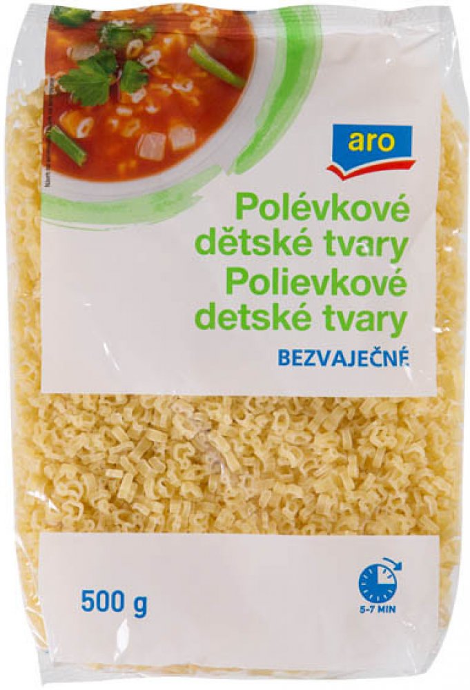 Oblíbený produkt z kategorie: . aro Těstoviny polévkové bezvaječné dětské tvary 500 g máme běžně skladem.