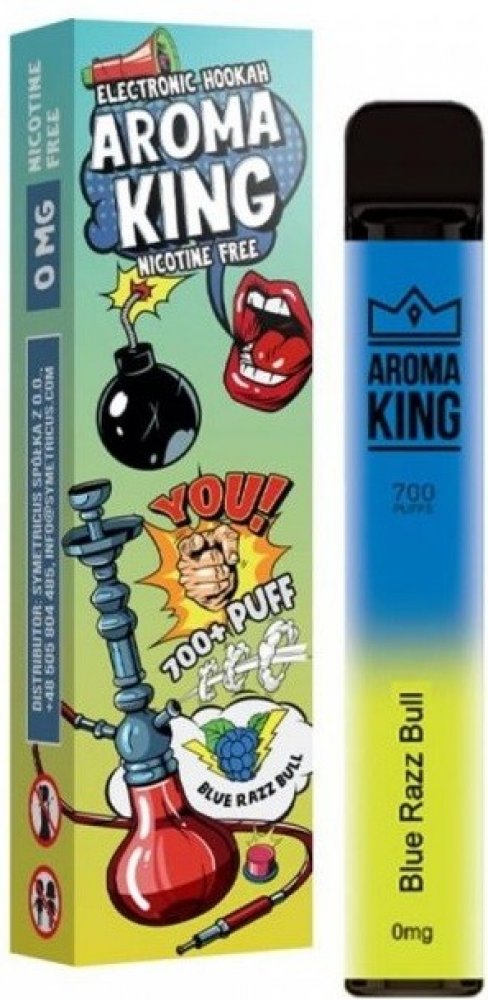 Jednorázová elektronická cigareta od polské značky Aroma King ze série AK 700+ Hookah Classic nabídne hned několik skvělých příchutí, které si zamilujete! Kapacita baterie je 550 mAh, takže vydrží alespoň na 700 potáhnutí. Značka Aroma King se pyšní především kvalitním zpracováním a výraznými příchutěmi, které dávají vapování zcela nový rozměr! Použití e-cigarety Aroma King je zcela jednoduché. Stačí ji vybalit z krabičky a začít vapovat. Uvnitř e-cigarety se skrývá náplň nebo-li liquid o objemu 2 ml. Obsah nikotinu je 0mg/ml. Jednorázová e-cigareta nelze doplňovat ani dobíjet!