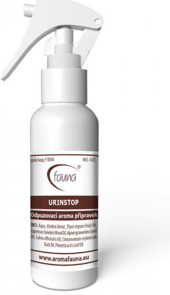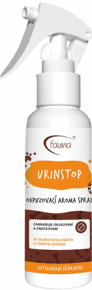 Sprej zabraňující okusování a značkování psů, koček i králíků. Veterinární přípravek k ošetření ploch a předmětů. Každé zvíře má přirozenou potřebu značit si své teritorium. URINSTOP je vhodný k vnitřnímu i venkovnímu použití, kde působí právě proti okusování předmětů i značkování území zvířat. Přípravek má trpkou hořkou chuť. Éterické oleje ze skořicové kůry a černého pepře obsažené v přípravku mohou díky své chuti a aromatu zvíře silně odpuzovat od takto ošetřených předmětů. Doplňkové balení 500 ml dodáváme s bezpečnostním uzávěrem. Veterinární přípravek schválený ÚSKVBL (065-14/C).