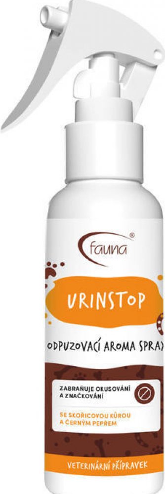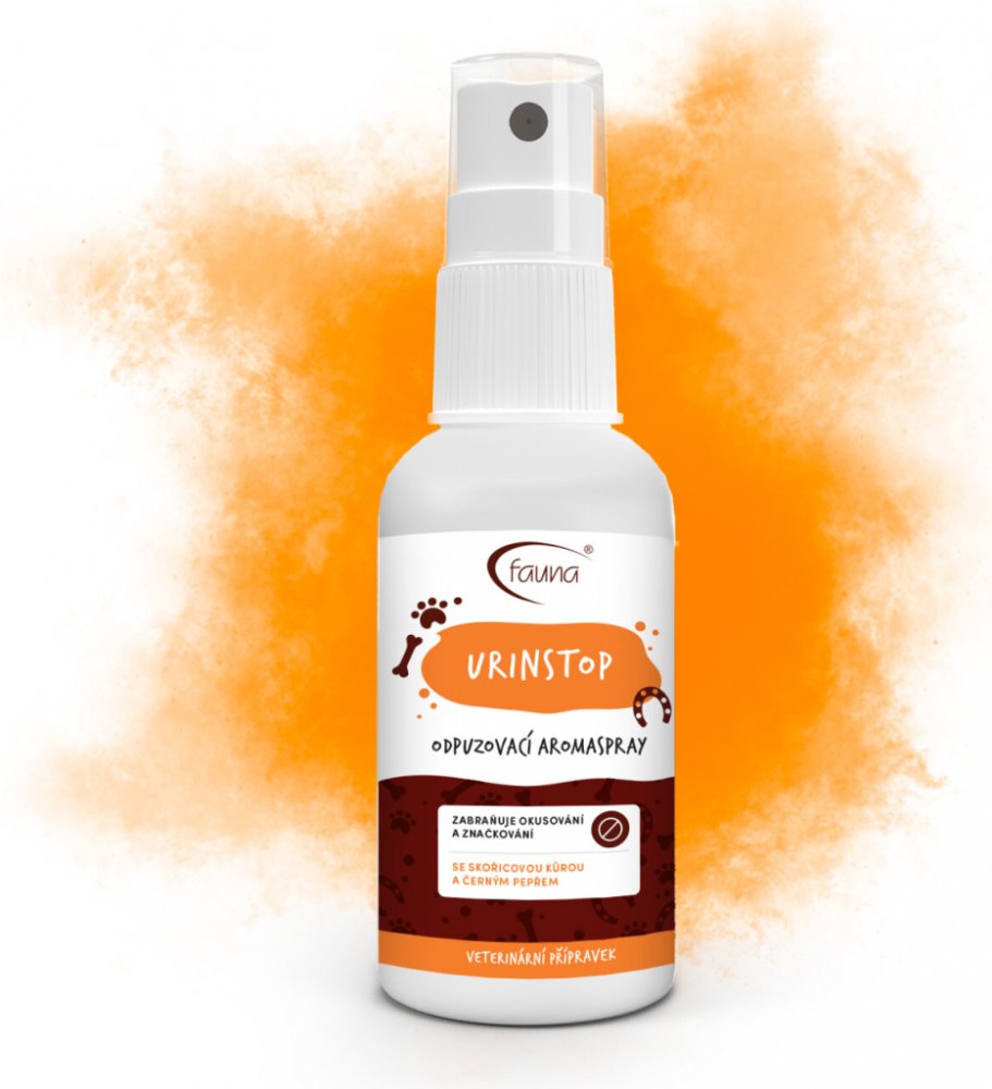 Sprej zabraňující okusování a značkování psů, koček i králíků. Veterinární přípravek k ošetření ploch a předmětů. Každé zvíře má přirozenou potřebu značit si své teritorium. URINSTOP je vhodný k vnitřnímu i venkovnímu použití, kde působí právě proti okusování předmětů i značkování území zvířat. Přípravek má trpkou hořkou chuť. Éterické oleje ze skořicové kůry a černého pepře obsažené v přípravku mohou díky své chuti a aromatu zvíře silně odpuzovat od takto ošetřených předmětů. Doplňkové balení 500 ml dodáváme s bezpečnostním uzávěrem. Veterinární přípravek schválený ÚSKVBL (065-14/C).