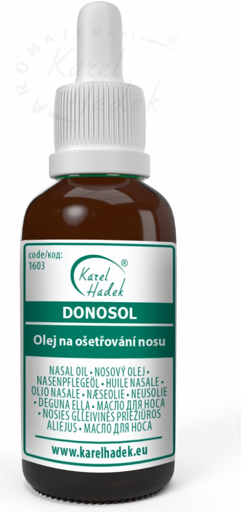 Speciální olej na ošetření nosu při bolestivých dutinách. Olejový přípravek pro období bolestivých dutin. Složky nosního oleje vykazují antimikrobiální, protizánětlivé a protiplísňové účinky. Napomáhají k vyloučení produktů zánětlivých procesů, pečují o nos a mají sekretolytické účinky. Obsažené esenciální oleje z čajovníku, borovice, dobromysli, hřebíčku a eukalyptu působí proti rozmnožování a usazování nežádoucích mikroorganismů na sliznici nosu. Svými účinky dokáže nosní olej nahradit i nosní sprej.